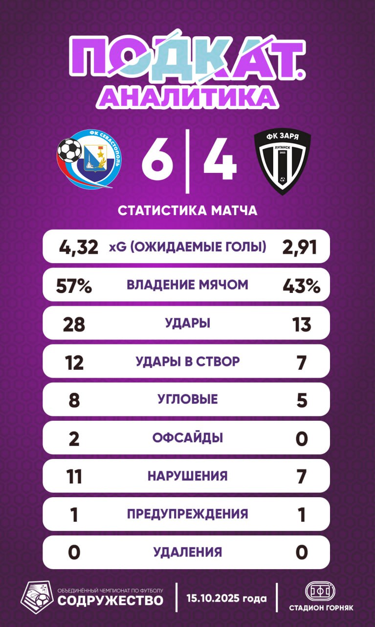 Лига Содружества. 21-я игровая неделя. «Севастополь-2» – «Заря Луганск» (Луганск, ЛНР) 6:4. Матч-центр