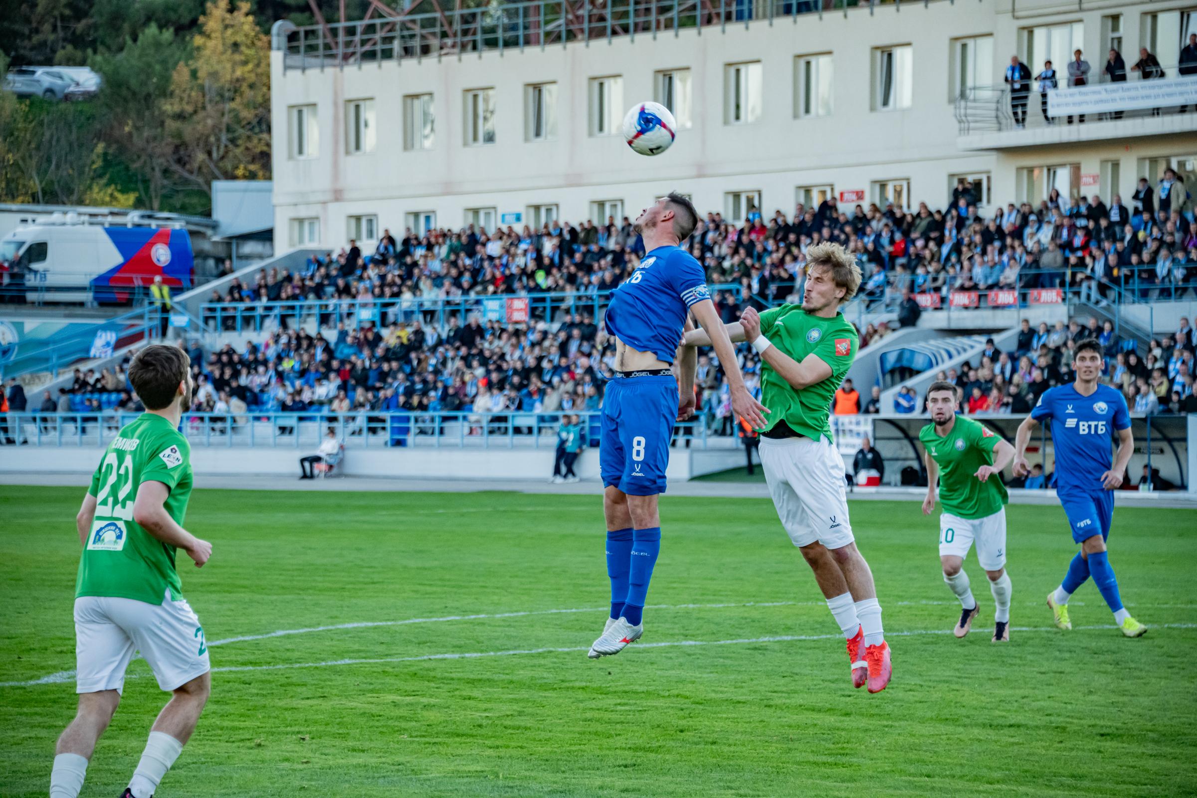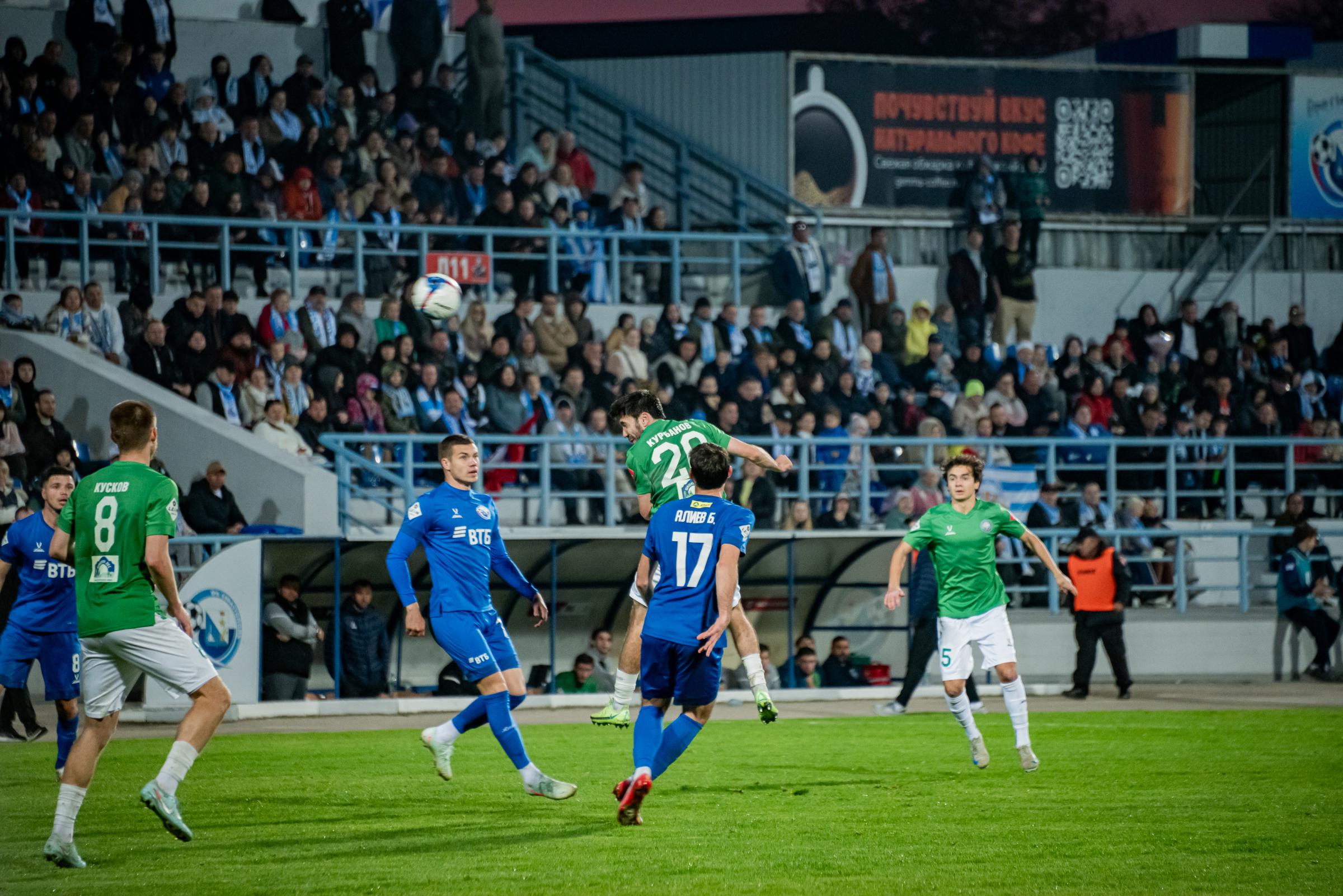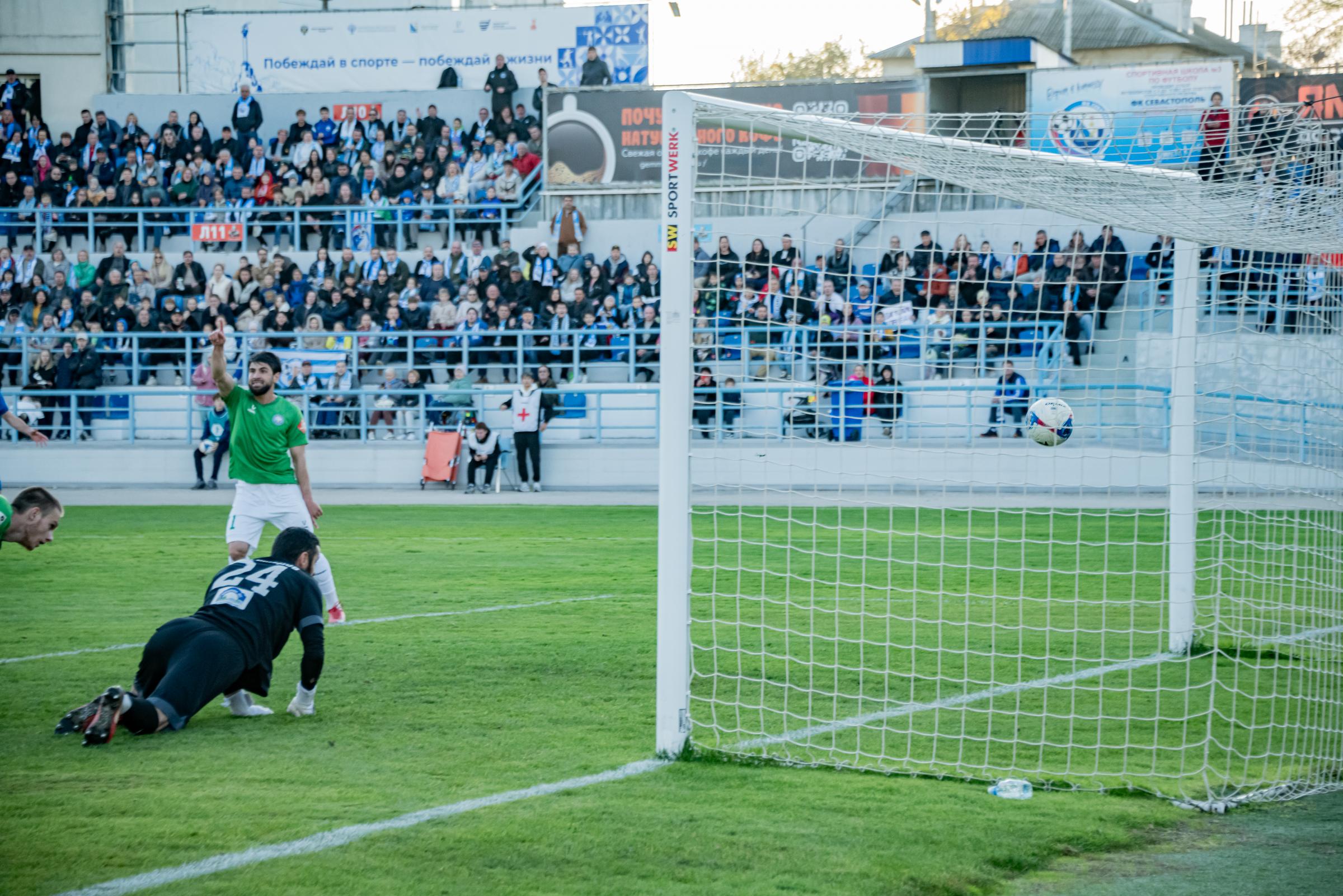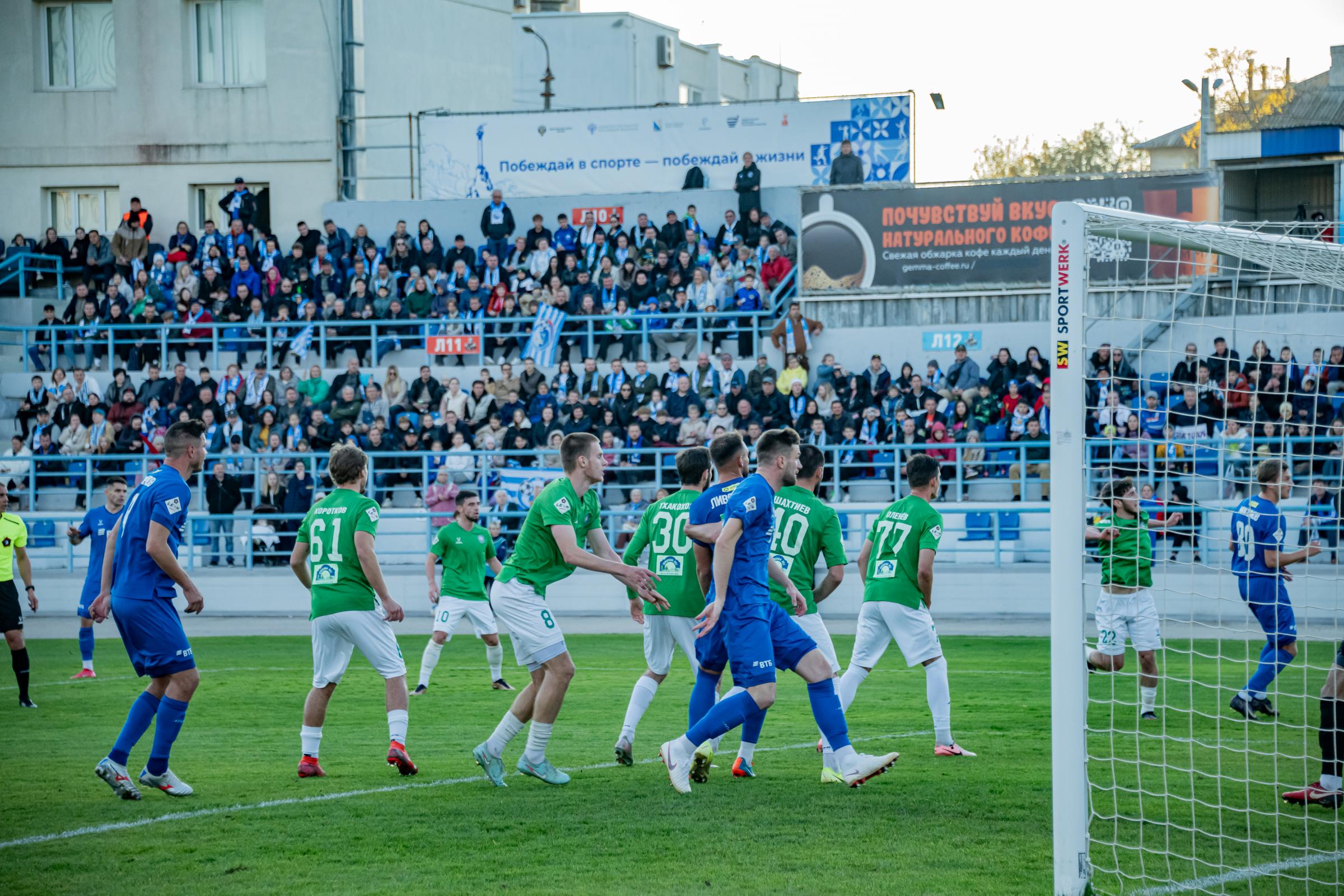 Встречались соперники, решающие высокие турнирные задачи. Лидер первенства принимал третью команду группы, в планах у которой «бронза» чемпионата. «Севастополю» крайне необходима была победа, чтобы в последнем туре не зависеть от результата матча главного конкурента за «золото» – «Динамо Ставрополя». Ход встречи показал, что соперники достойны друг друга. На футбольном поле был открытый, силовой футбол с равными шансами на успех. Первыми на 17-й минуте могли забить гости, но Кучейко вытащил мяч из верхнего угла ворот. На 31-й минуте очередная атака «Севастополя» завершилась взятием ворот. После удара Станислава Рубана голкипер отбил мяч перед собой, но первым добивание успел Редван Османов, – 1:0. Гости могли отыграться на 37-й минуте после подачи углового, но вновь надежно сыграл Кучейко, отбив сложный мяч практически с линии ворот.