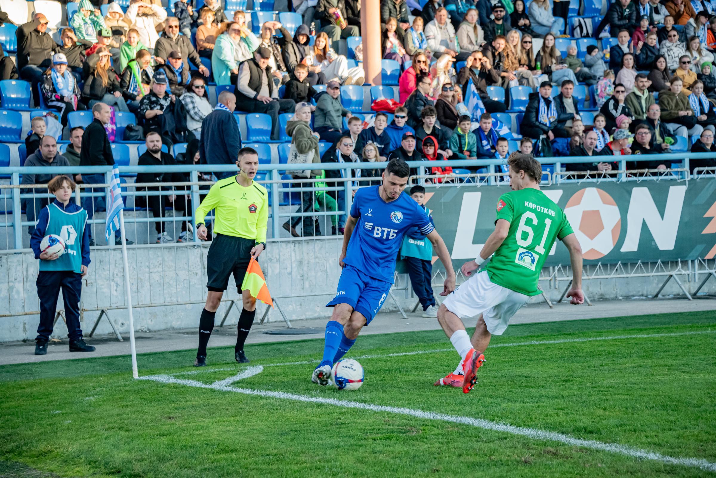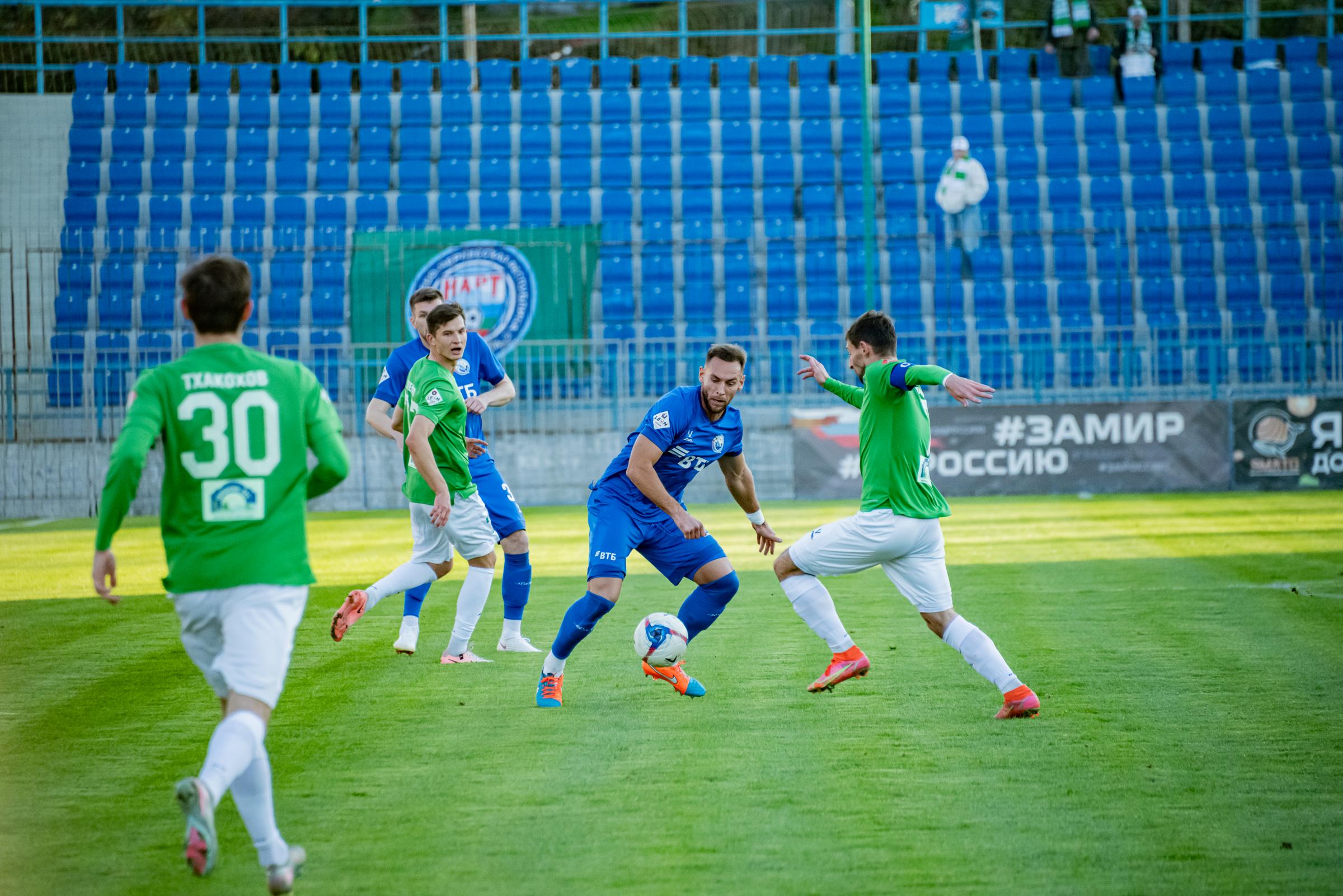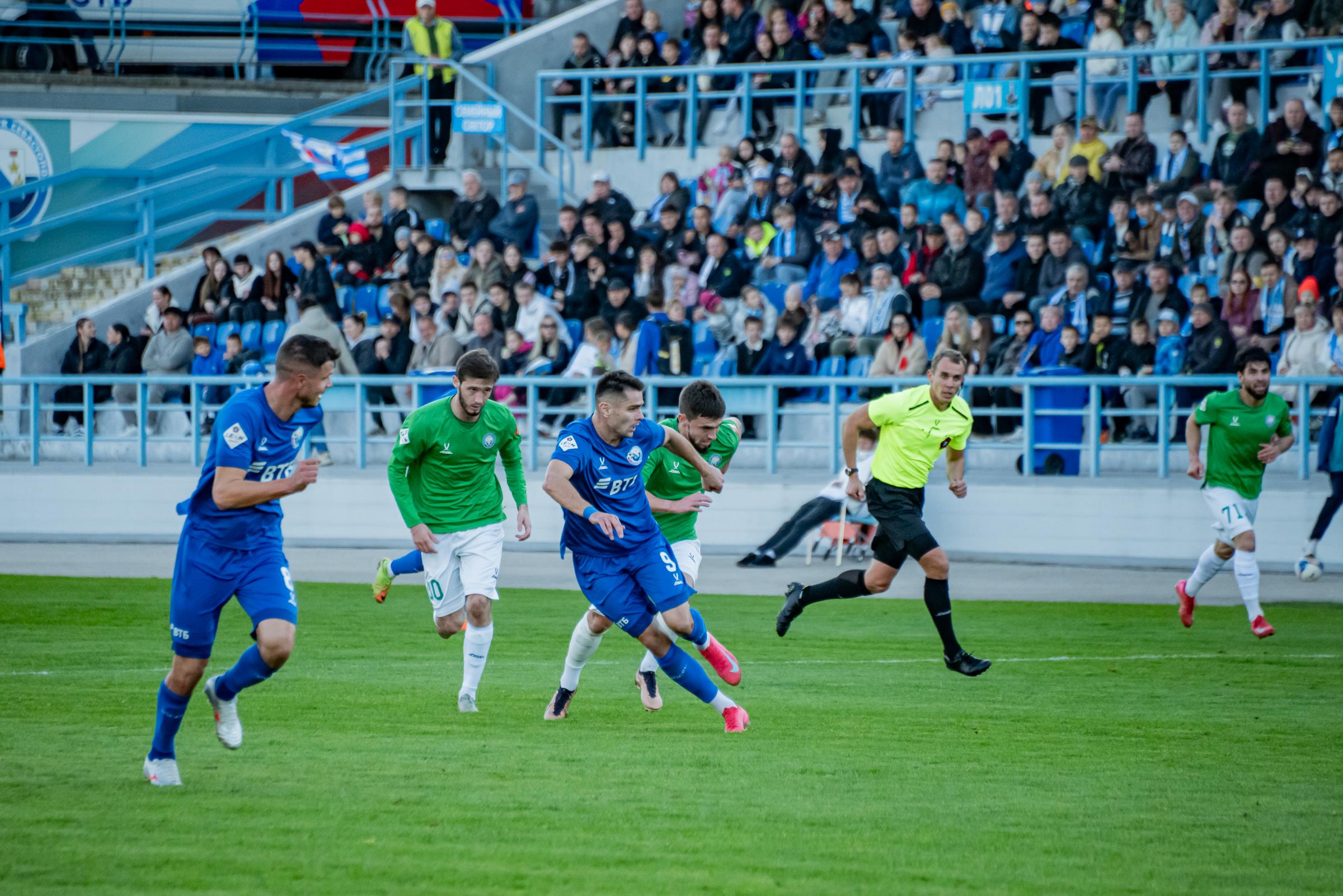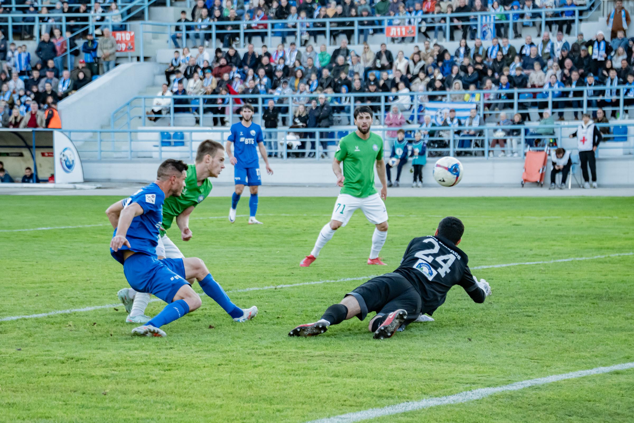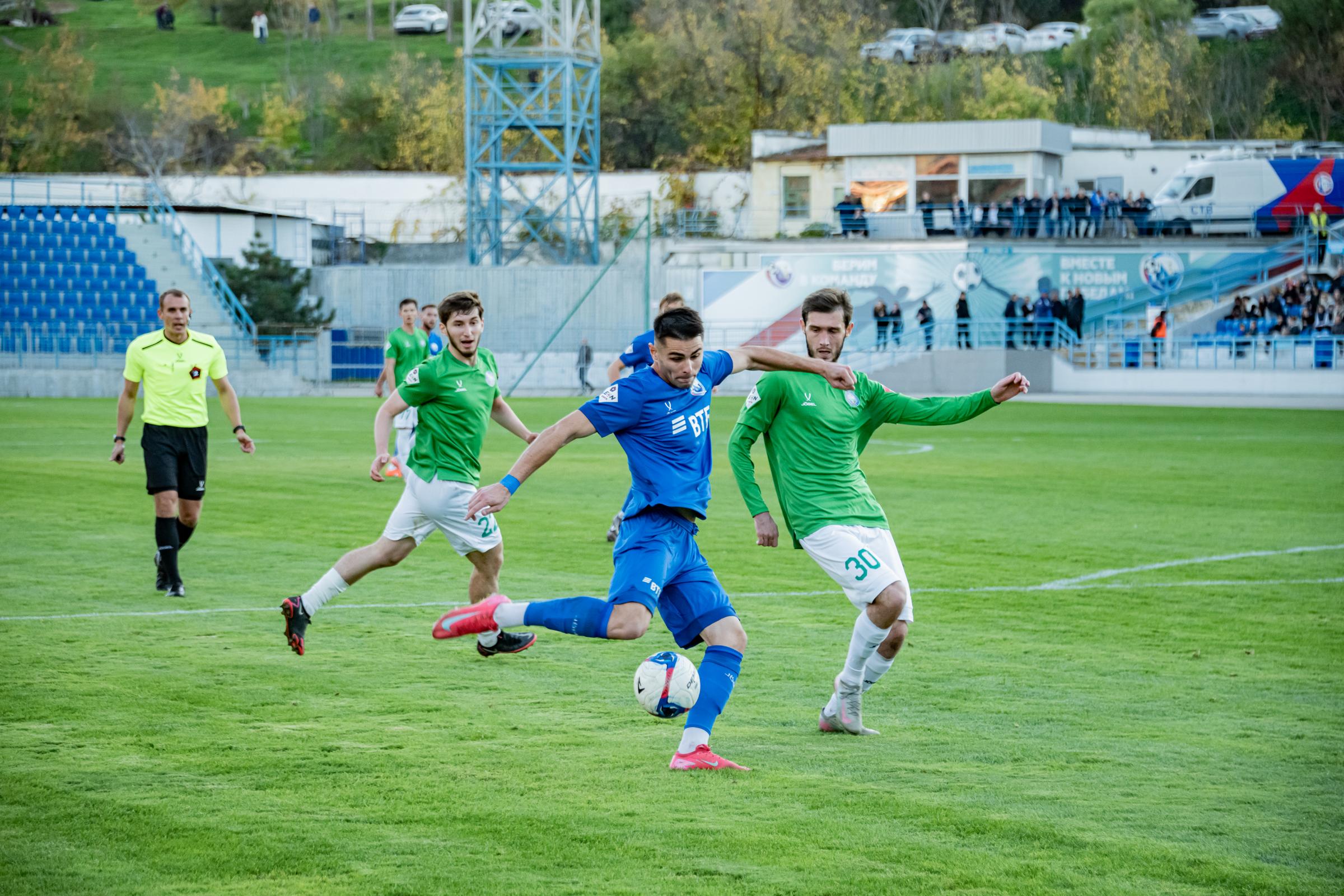 Встречались соперники, решающие высокие турнирные задачи. Лидер первенства принимал третью команду группы, в планах у которой «бронза» чемпионата. «Севастополю» крайне необходима была победа, чтобы в последнем туре не зависеть от результата матча главного конкурента за «золото» – «Динамо Ставрополя». Ход встречи показал, что соперники достойны друг друга. На футбольном поле был открытый, силовой футбол с равными шансами на успех. Первыми на 17-й минуте могли забить гости, но Кучейко вытащил мяч из верхнего угла ворот. На 31-й минуте очередная атака «Севастополя» завершилась взятием ворот. После удара Станислава Рубана голкипер отбил мяч перед собой, но первым добивание успел Редван Османов, – 1:0. Гости могли отыграться на 37-й минуте после подачи углового, но вновь надежно сыграл Кучейко, отбив сложный мяч практически с линии ворот.