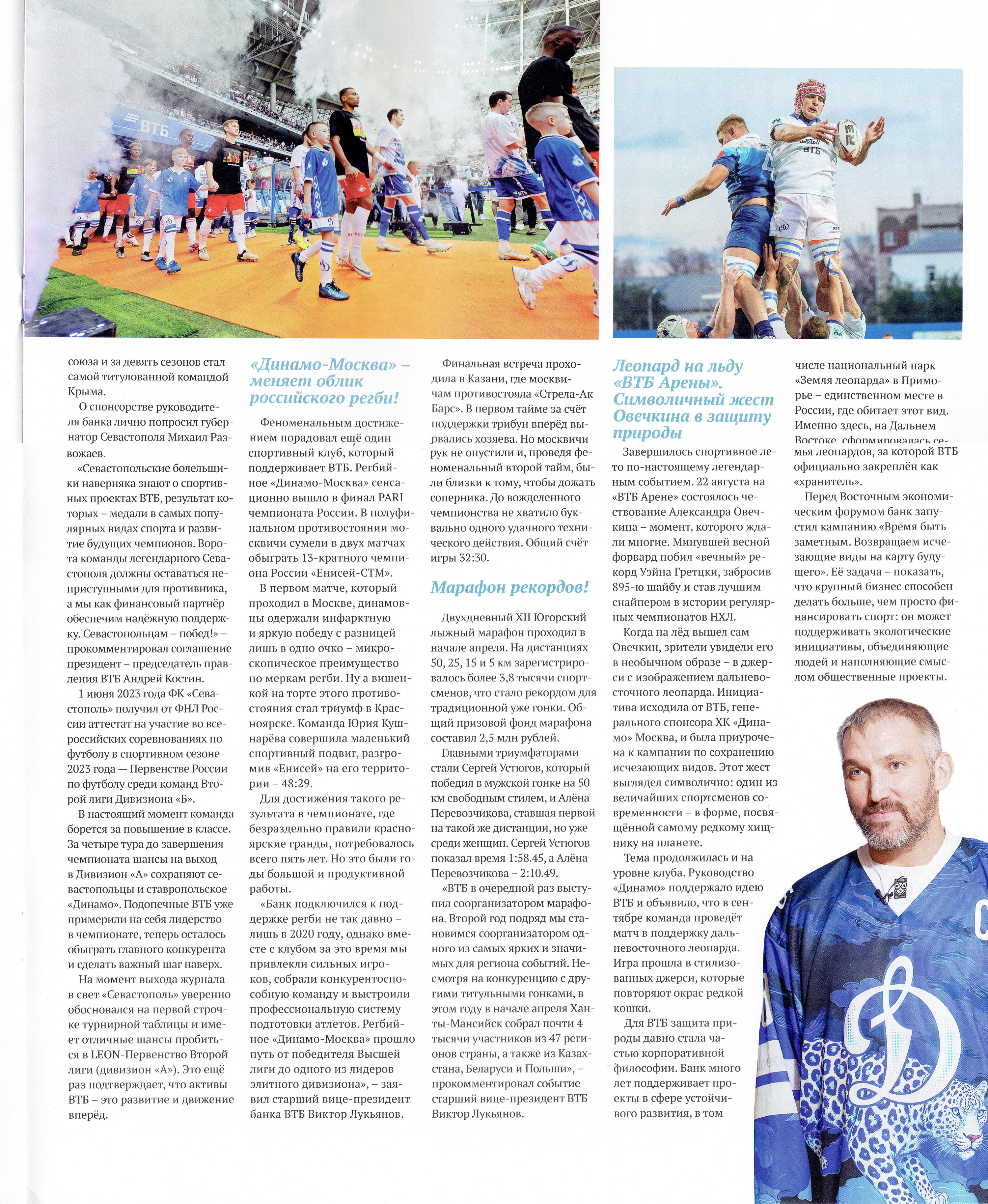 В ноябрьском номере журнала «Советский спорт» (оказывается в настоящее время издается его бумажная версия) вышла большая статья, посвященная спортивным активам ВТБ. Среди них были указаны Единая лига ВТБ, «ВТБ-Арена», футбольный и регбийный клубы «Динамо» (Москва), а также ФК «Севастополь».
