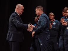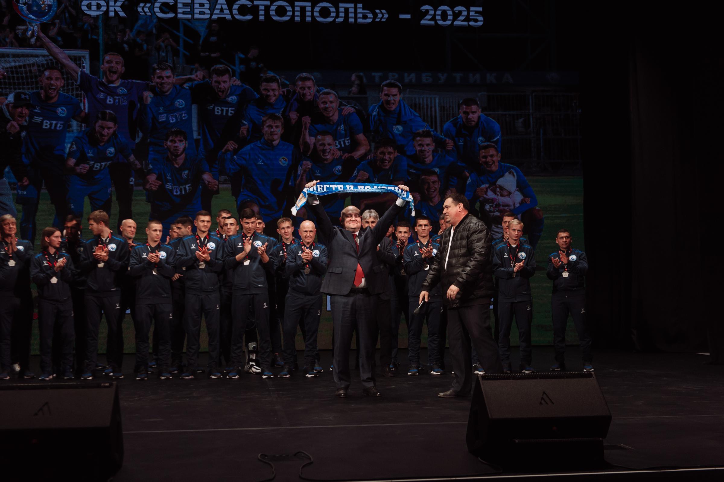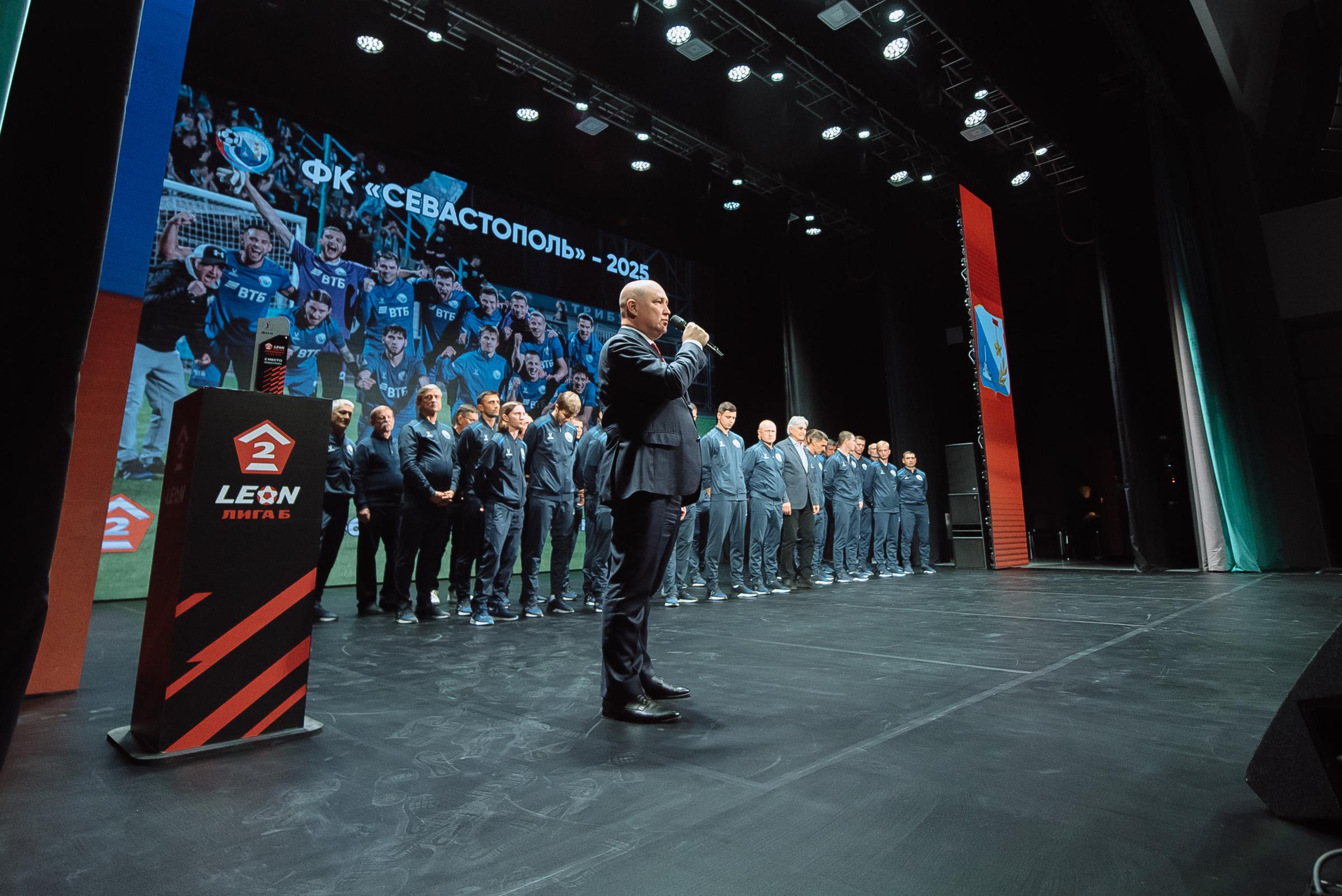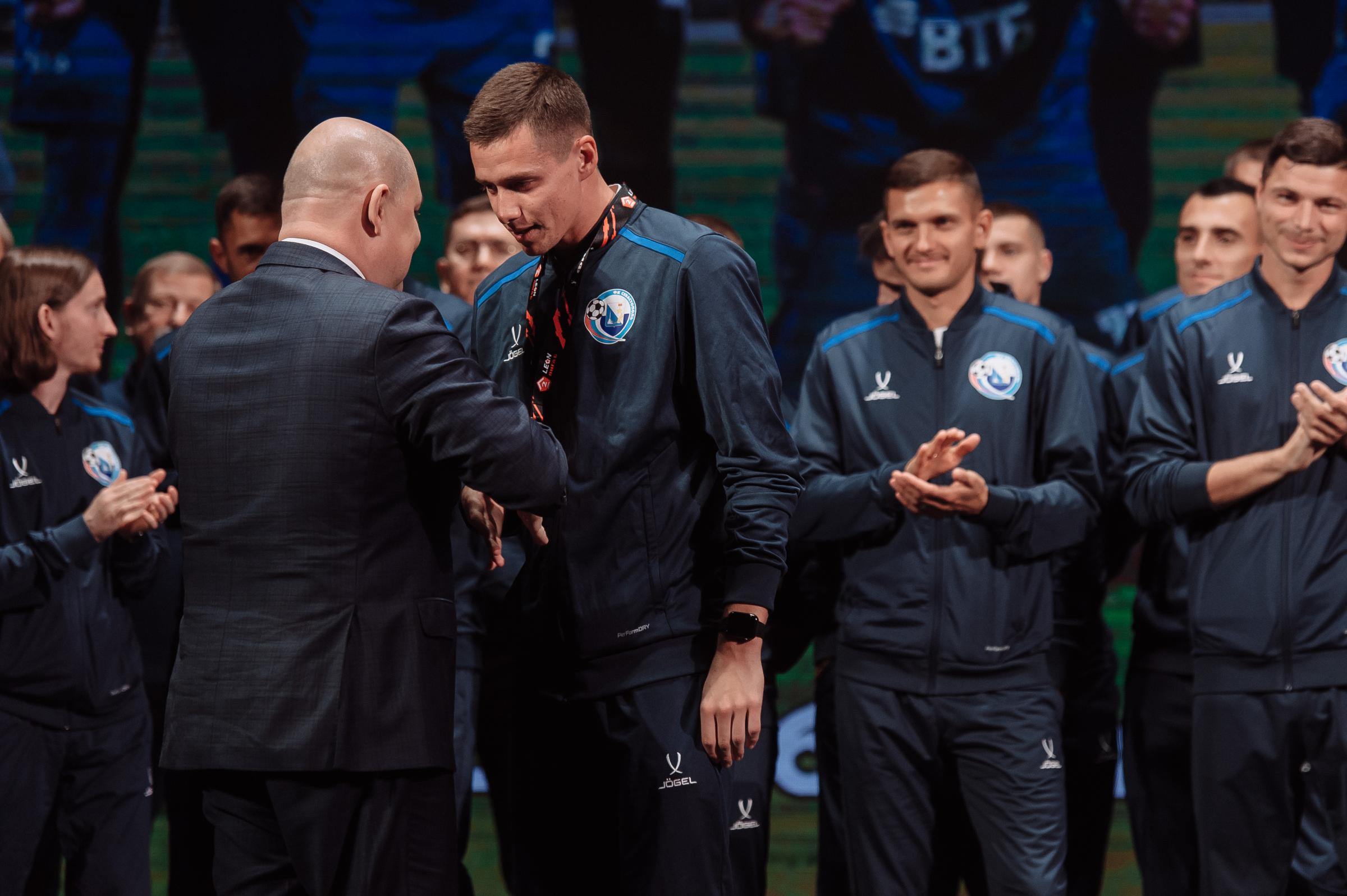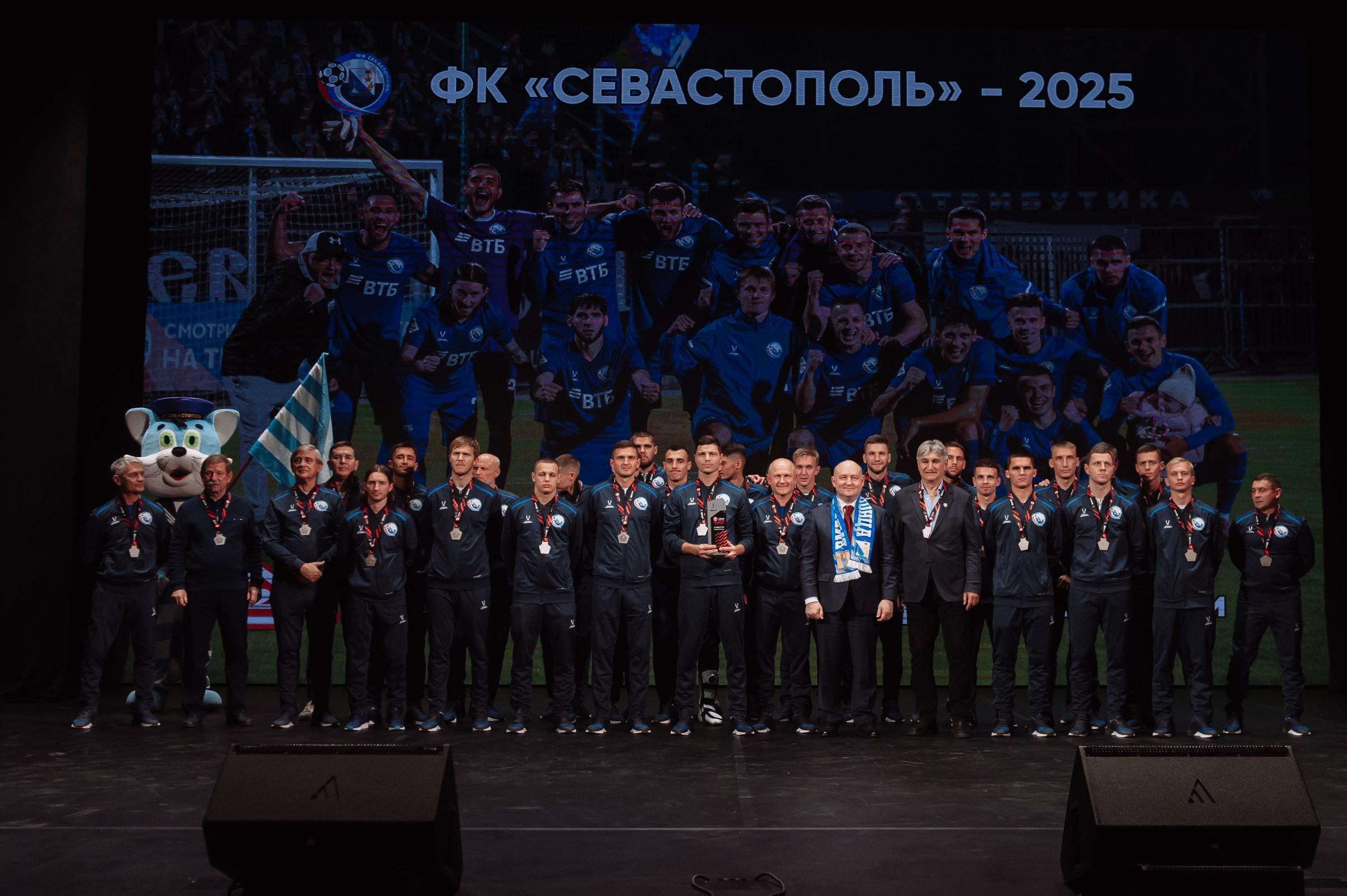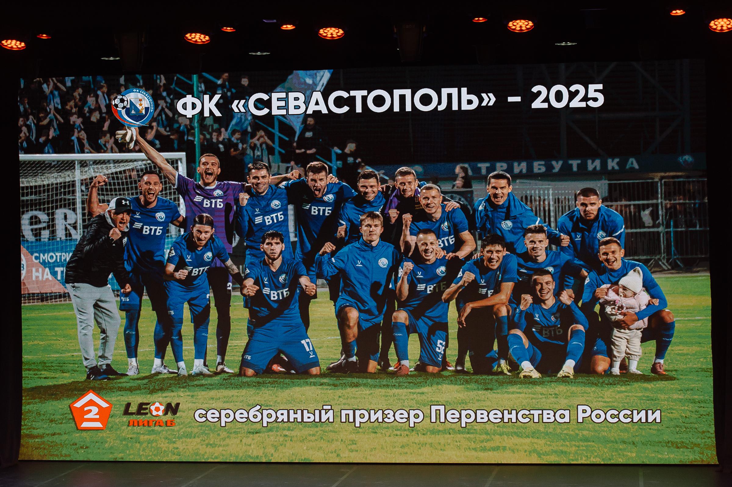 Торжественная церемония награждения ФК «Севастополь» серебряными медалями LEON-Первенства России по футболу среди команд Второй Лиги «Дивизион Б» прошла в Многофункциональным культурным центром «Бухта Казачья». Награды футболистам и тренерам вручил Губернатор Севастополя Михаил Развожаев.