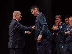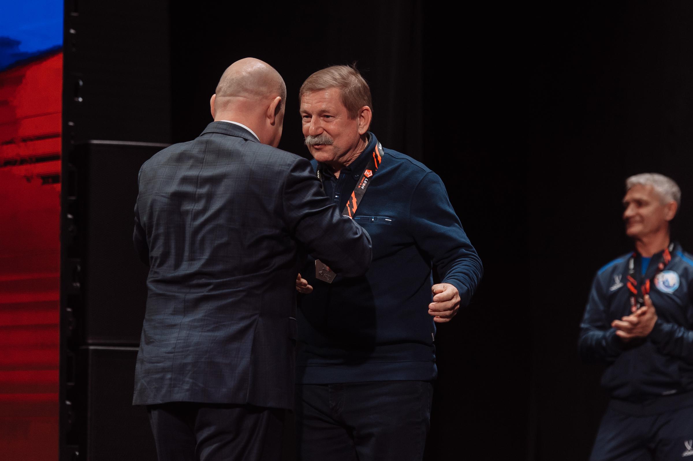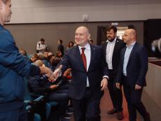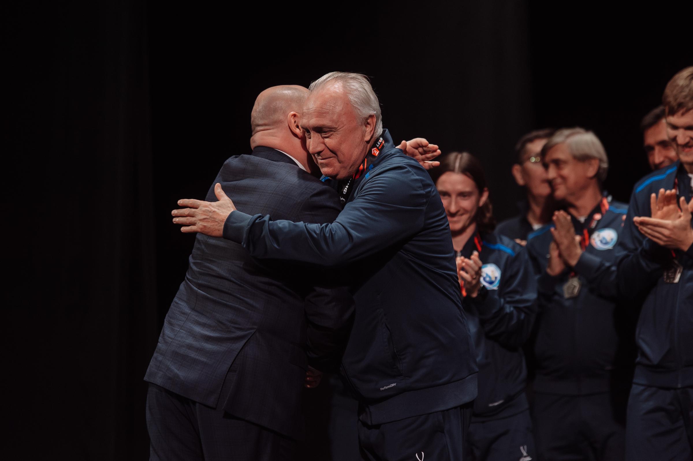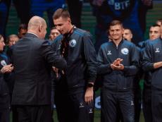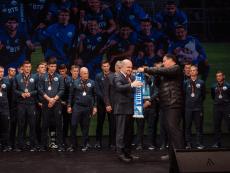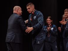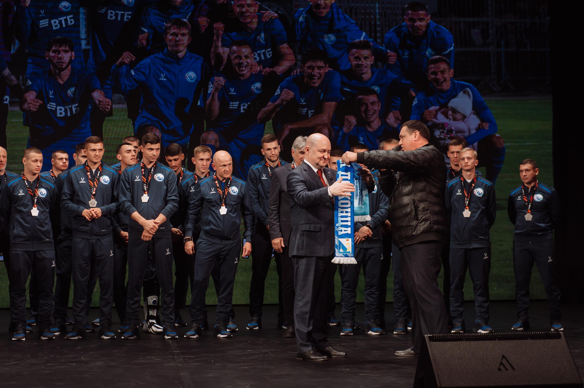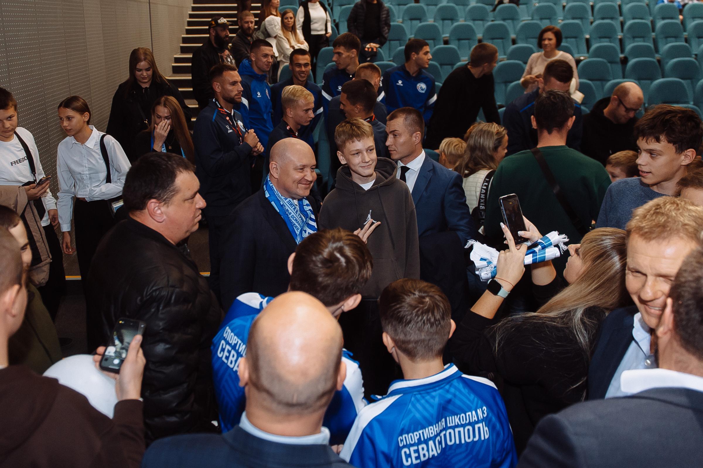 Один из лидеров фанатского движения ФК «Севастополь» Иван Куба поблагодарил команду за высокий результат сезона, а Губернатора за поддержку команды и вручил Михаилу Развожаеву специально изготовленный клубный шарф с фамилиями всех футболистов и тренерского штаба команды.