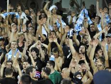 | 7' | Наши болельщики растянули полосатый банер: "Засунем по самые помидоры" | |