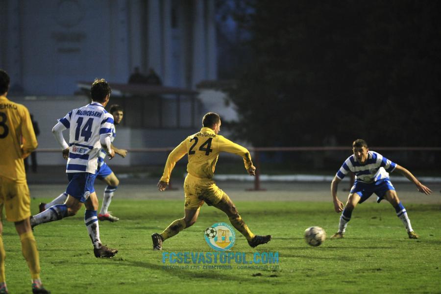 Александр Жабокрицкий заработал пенальти, который четко реализовал Андрей Шевчук. Однако арбитр заставил перебить одиннадцатиметровый, а Стас Гудзикевич не сумел переиграть с «точки» Лавренюка. Тем не менее, севастопольцы свой победный гол забили: Юрий Плешаков откликнулся на не то удар, не то передачу Эрвина Меметова.