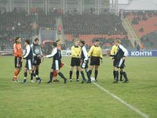 Именно последнему удалось на 28й минуте нанести суперудар, после которого наши футболисты сравняли счет. Навес в штрафную «горняков» закончился банальным выносом мяча за ее пределы (Свидерский), на отскоке первым оказался Андрей Шевчук, который вложил в этот удар всю свою душу, и умение. Получилось красиво и эффектно, в самый угол ворот Шуткова — 1:1.