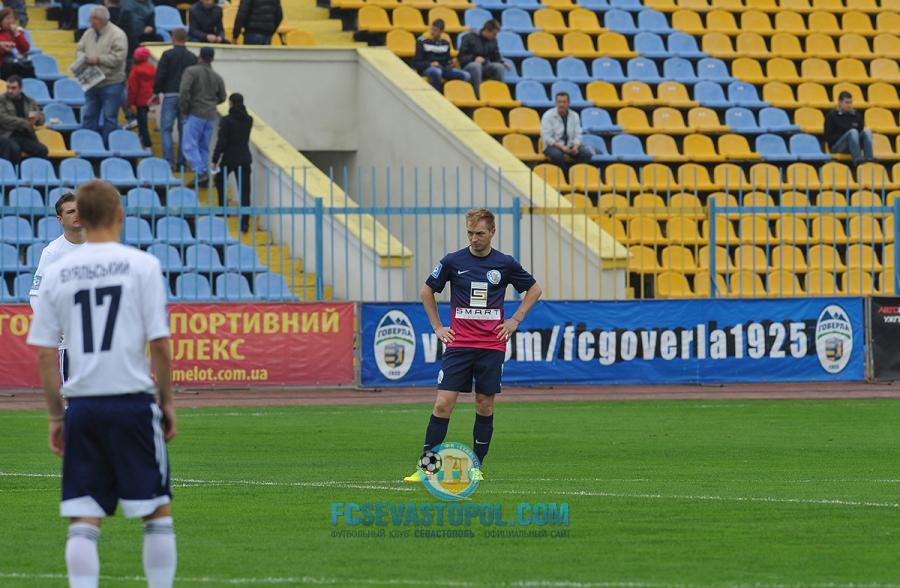 Забив быстрый гол, «Севастополь» грамотно переключился на игру на контратаках. И некоторые из них могли привести к увеличению счета (тот же Кожанов). У «Говерлы» же в первом тайме кроме ударов «выше», «неточно» и «мимо» запомнился лишь один. Перед перерывом Душан Савич головой переправлял мяч после навеса со штрафного Виталия Буяльского, но мяч попал в «перекладину, поперечину, каркас ворот» и взлетел над этими самыми воротами, отправившись за лицевую линию. Тут стоит отметить, что ширина каждой из составляющих каркаса – 12 см, и по всем законам геометрии, для того, чтобы мяч после удара ужгородского македонца залетел в ворота, ему нужно было попасть в нижние 6 см этого каркаса, но не в верхние 2. А так – эффектно, конечно: перекладина! Пусть даже Литовка все контролировал.