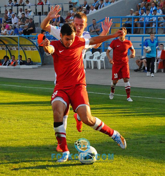 Надо отдать должное выдержке гостей. Ощущалось, что состав, который выставил Юрий Газзаев на этот матч, несколько экспериментальный, и астраханцы сами не знают чего от себя ждать. Поэтому событий они не форсировали, у своих ворот помаленьку отбивались, а у чужих ворот ждали своего момента. И спустя полчаса игры, дождались. Да еще и какого момента – конфетки. Защита вышла в линию, оставив молодого форварда «Волгаря» Жабкина в абсолютном офсайде, как вдруг отскочивший мяч удобно лег на голову Ибрагимову и севастопольский футболист, принявший решение отпасовать мяч своему вратарю, выдал исключительную по точности и удобству высоты полета мяча, передачу на форварда гостей. Жабкину оставалось только не промахнуться по воротам, что он и исполнил, открыв счет в матче.
