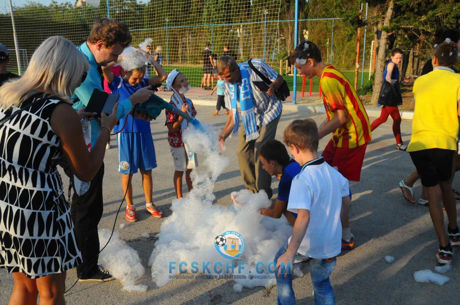 Кстати, о футболистах, идущих на смену. В перерыве матча состоялось мероприятие знаковое для севастопольского детского футбола. Ещё с союзных времён в Севастополе была традиция открывать городской чемпионат среди детских команд на главной футбольной арене города. Какое-то время эта традиция была не востребована, и вот 15 августа, на СК «Севастополь» состоялось её феерическое возрождение. Около 40 команд стартующих в чемпионате Севастополя, вышли на дорожку стадиона и получили свою порцию призов (сетки с футбольными мячами) от меценатов, а главное свою порцию аплодисментов от земляков. Ведь именно среди этих пацанов наверняка есть будущие обладатели Суперкубка Крыма. По крайней мере, в Севастополе на это очень надеются.