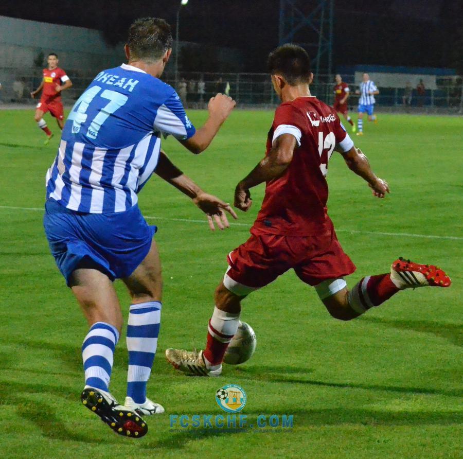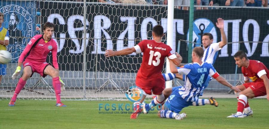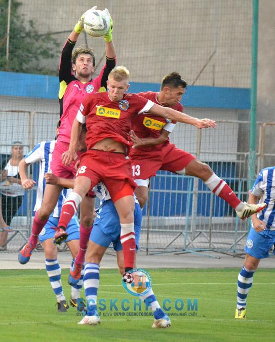У керчан больших шансов на успех при взятии ворот не наблюдалось. Основную опасность несли стандарты. Но с ударами Олейника и Петрика вратарь севастопольцев справился уверенно, чем, как и полагается классному голкиперу внёс свою лепту в уверенную и спокойную игру своей команды. Самый же опасный момент у ворот Науменко создали себе сами севастопольцы. Науменко пошёл к линии штрафной, а Степанов в борьбе с нападающим пробросил мяч мимо нашего голкипера, но, к счастью, в ворота не попал.