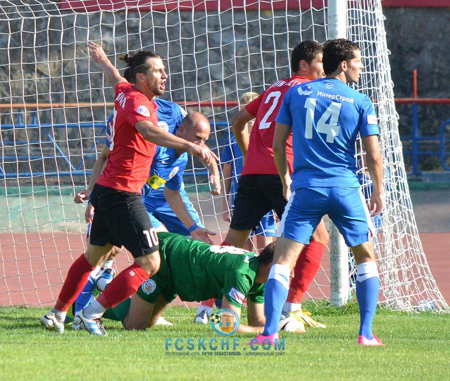 Моменты для взятия ворот Науменко на этом практически иссякли. Можно вспомнить разве что удар Белика «мимо кассы» после того как его забыли на дальней штанге севастопольские защитники. Всё самое интересное в дальнейшем происходило либо в центре поля, либо у ворот Высоцкого. Прокопенко не удалось реализовать свой шанс, пробив во вратаря с нескольких метров. Плешакова сбили в аналогичном моменту с Шевчуком эпизоде, но реакции не последовало. Когда же фолы происходили вне штрафной площадки, их фиксировали, но тут уже севастопольские футболисты бездарно транжирили свои возможности отыграться ещё до перерыва.