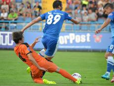 | 35' | | Классно разыграли, быстро. Ференчак получил мяч в центре поля и сразу отдал направо Гевличу, который набрал по флангу скорость. Влад протянул мяч и прострелил вдоль линии вратарской. Прокопенко головой замыкал, но прямо туда, где находился кипер |