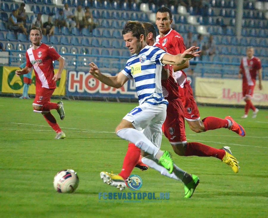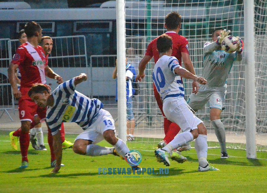 | 15' | | ОПАСНО!!! Игорь Мельник чуть было не вышел один на один, воспользовавшись ошибкой обороны Севастополя. Но Сергей Науменко вышел далеко за пределы своих владений и в подкате выбил мяч из-под ног соперника |