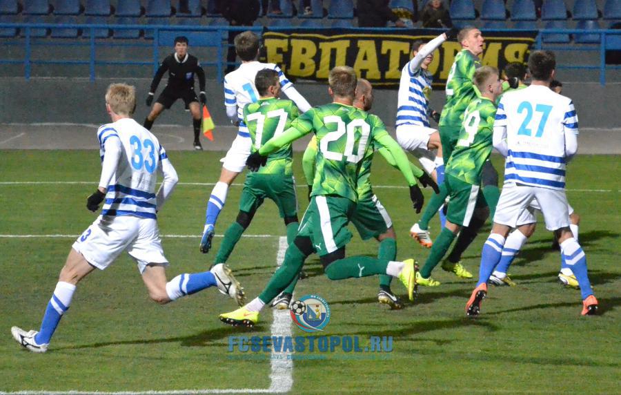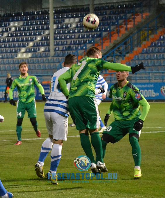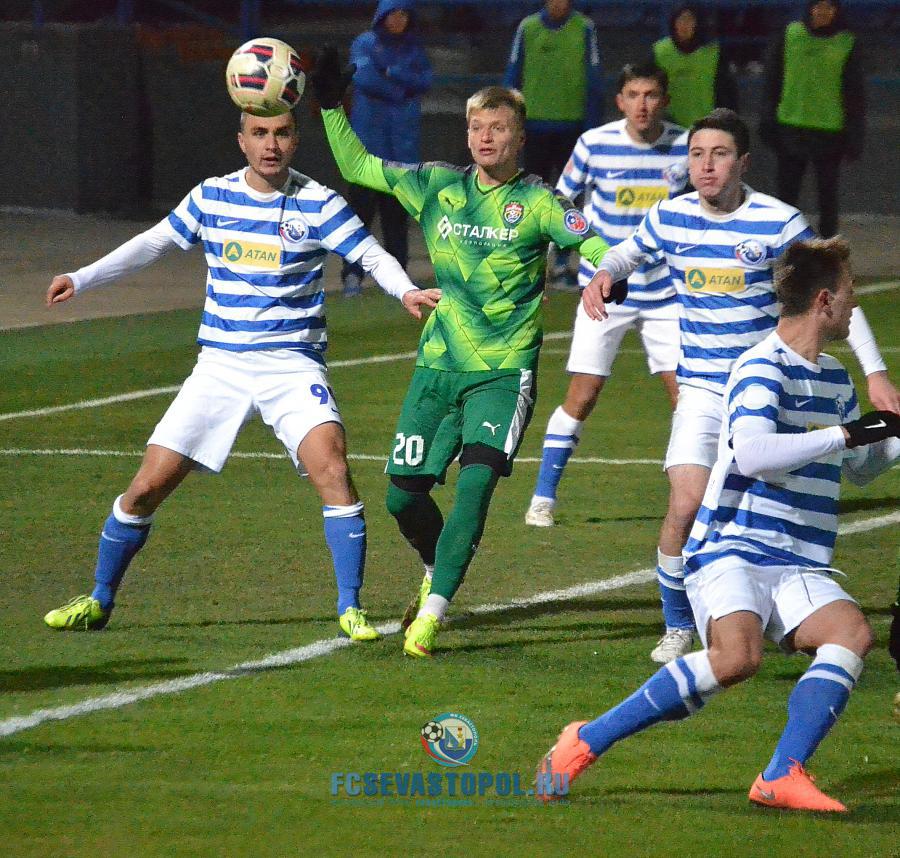 | 21' | | Хомич, казалось, неудачно катнул мяч на линию штрафной Севастополя. Но именно там оказался совершенно один Эюпов. Который вошел в штрафную и пробил под дальнюю штангу. Науменко кончиками перчаток с трудом перевел на угловой |