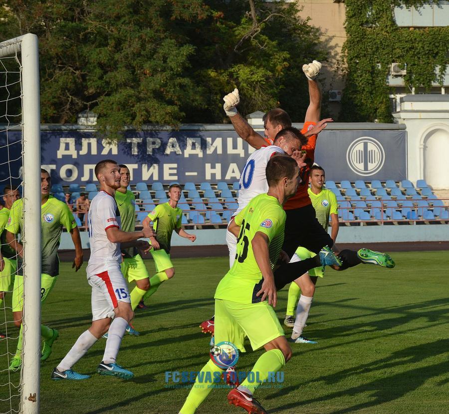 В первом тайме у севастопольцев была реальная возможность увеличить счет. На 34-й минуте после очередной фланговой атаки Максим Супрун простреливал в штрафную площадь «ТСК-Таврии». Первым на мяче оказался Евгений Прокопенко, который в падении с линии вратарской направил мяч выше ворот.