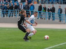 То, что аутсайдер нашего чемпионата «Гвардеец» вышел на финальный поединок с самыми серьезными намерениями, он доказал уже на 3-й минуте. После навеса с фланга из района одиннадцатиметровой отметки головой опасно пробивал Андрей Зборовский, но наш голкипер правильно выбрал позицию и забрал мяч в руки. На счету Зборовского в первом тайме был ещё дальний удар по воротам, но мяч прошел выше перекладины. В остальное время инициатива полностью принадлежала нашей команде. Впереди активно действовали Андрей Кива, Дмитрий Матвиенко и Редван Османов. Севастопольцы атаковали много и разнообразно, но в первой половине игры дело до взятия ворот не дошло.