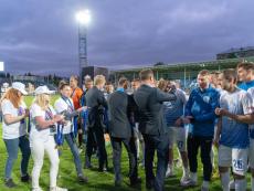 Финал Кубка Крымского футбольного союза в Севастополе получился праздничным, торжественным, ярким и во всех отношениях запоминающимся. Изначально одно из главных спортивных мероприятий полуострова взял под свою опеку вице-губернатор Севастополя Илья Пономарёв, который является страстным болельщиком футбола. Финальный кубковый матч проходил накануне 74-й годовщины Победы в Великой Отечественной войне и 75-й годовщины освобождения Севастополя от немецко-фашистских захватчиков. Болельщиков при входе на стадион встречали песнями и танцами творческие коллективы города-героя, работали полевые кухни, перед трибунами выступал оркестр Черноморского флота. Участников кубкового финала поздравили вице-губернатор Севастополя Илья Пономарёв, министр спорта Республики Крым Ольга Торубарова и президент Крымского футбольного союза Юрий Ветоха. Перед началом поединка более сотни юнармейцев и волонтеров развернули на трибунах Георгиевскую ленту и цифру «75», и в сопровождении оркестра Черноморского флота весь стадион исполнил песню «День Победы». Почетными гостями поединка стали ветераны Великой Отечественной войны Николай Степаненко и Михаил Платоха.
