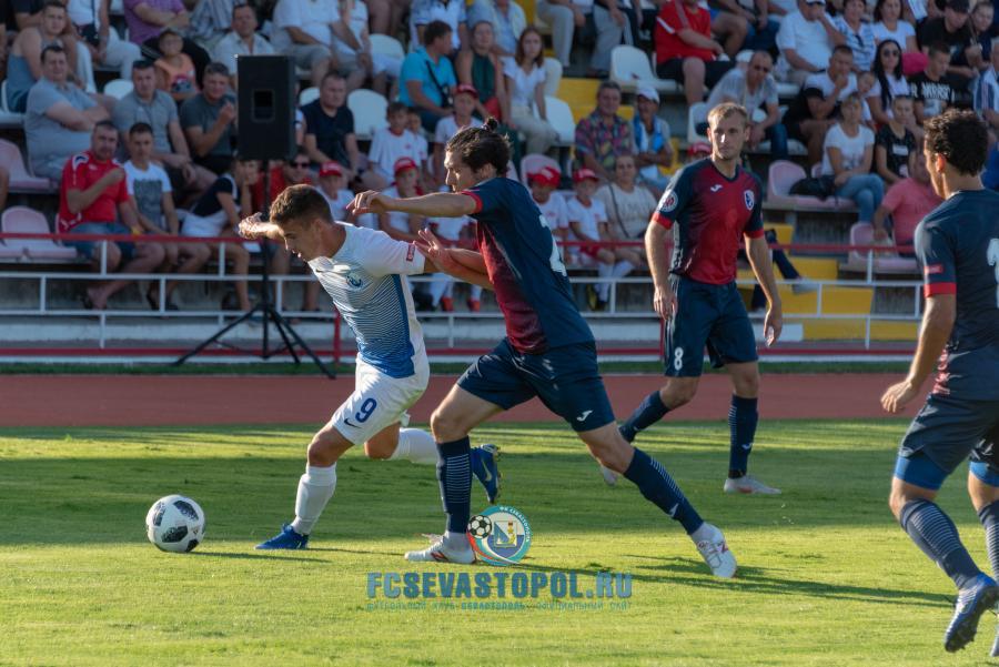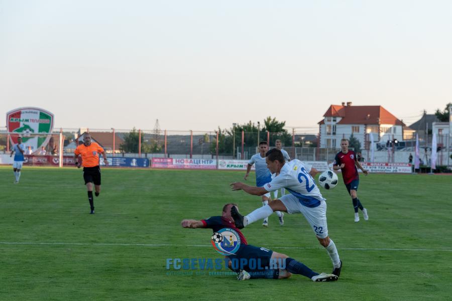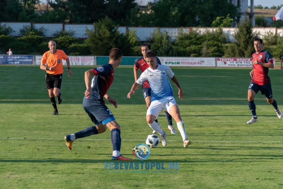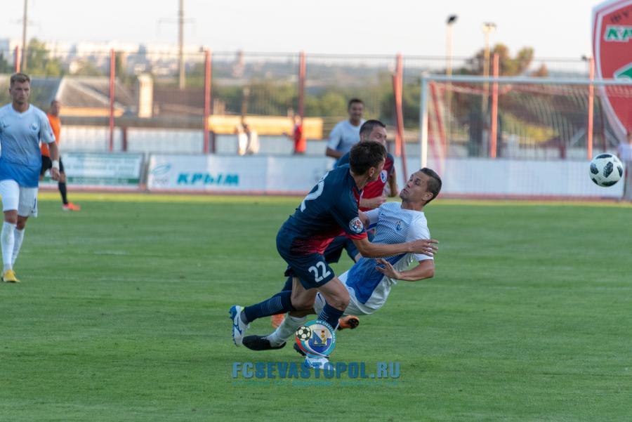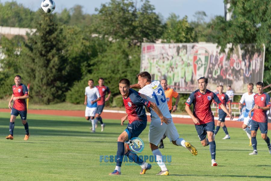 Первую половину матча команды играли в осторожный футбол, изучая возможности друг друга после летнего межсезонья. «Севастополь» выглядел сыграннее, чаще владел мячом и больше был акцентирован на атаку. Реальных возможностей забить гол у нашей команды не было, но, как всегда, был непредсказуем для соперника Дмитрий Матвиенко, мастерски исполнявший штрафные удары и угловые, частенько превосходили своих оппонентов на флангах Владислав Гевлич и Антон Голенков, при первой возможности по воротам бил Андрей Кива. Номинальные хозяева поля умело защищались, и соперники ушли на перерыв при счёте 0:0.