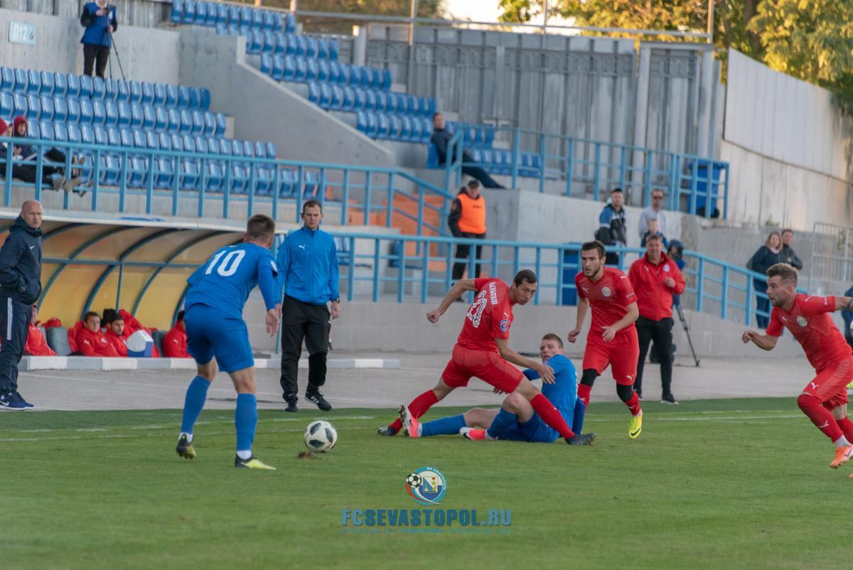 | 43' | | Матвиенко подал. Защитники выбили, но Османов сразу включился в борьбу и вернул мяч севастопольцам |