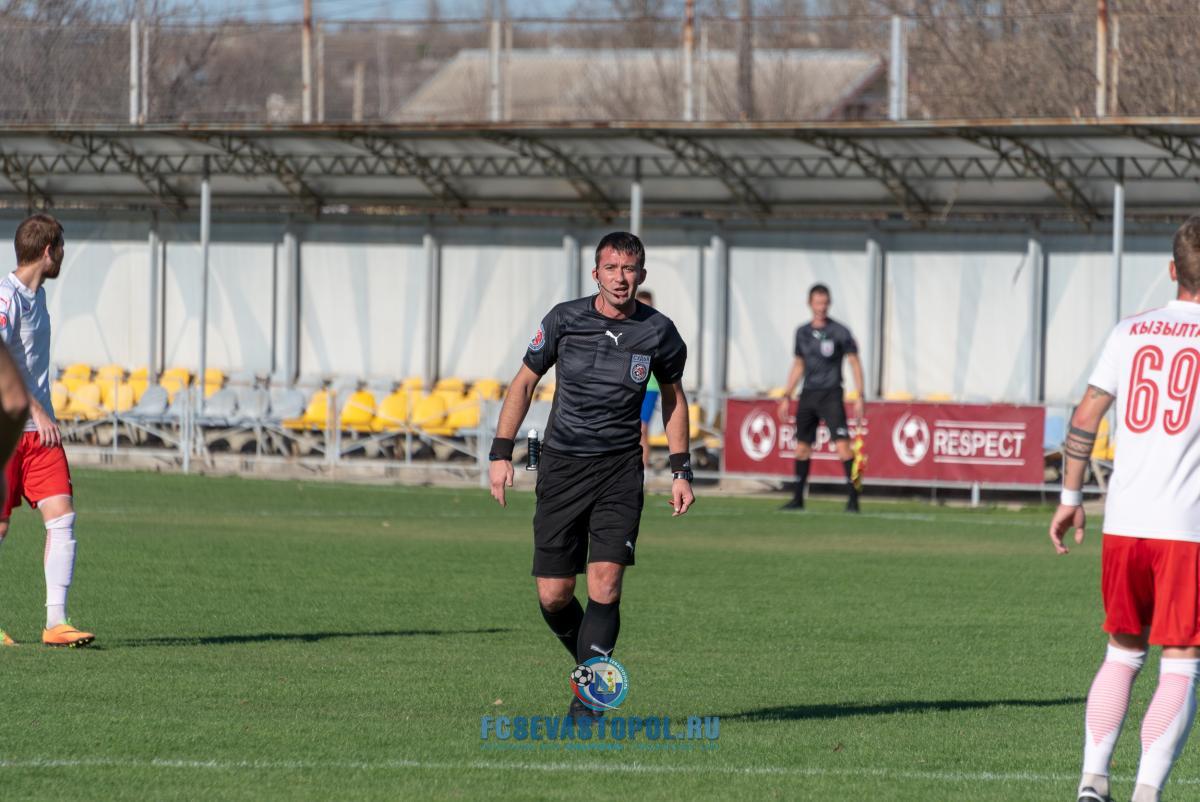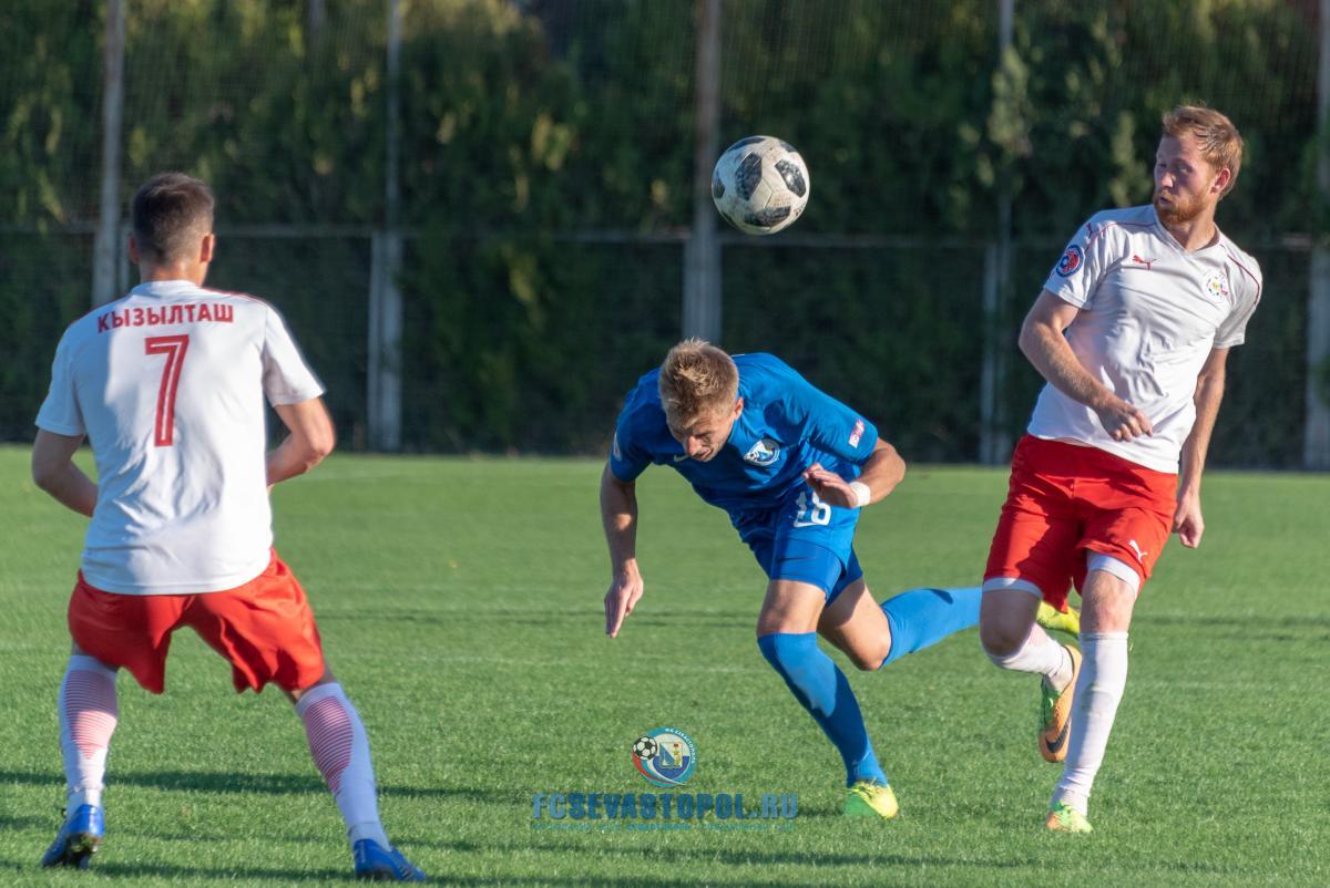 Первый тайм наша команда провела выше всяких похвал. Севастопольцы большую часть времени владели мячом, играя на чужой половине поля, и при каждом удобном случае старались бить по воротам, причём с любой дистанции. Прицельными ударами отметились Евгений Прокопенко, Андрей Кива, Виталий Мироненко, Максим Давидчук, но каждый раз им либо немного не хватало точности, либо надёжно действовал голкипер «Кызылташа» Александр Карнаухов. Гости дожали соперника под занавес первого тайма, когда на 43-й минуте Редван Османов решился на удар с линии штрафной и точно попал в верхний угол ворот бахчисарайской команды. Бросок вратаря был эффектным, но не эффективным. «Севастополь» вышел вперёд – 1:0, чем значительно приблизился к выходу в полуфинал Кубка КФС.
