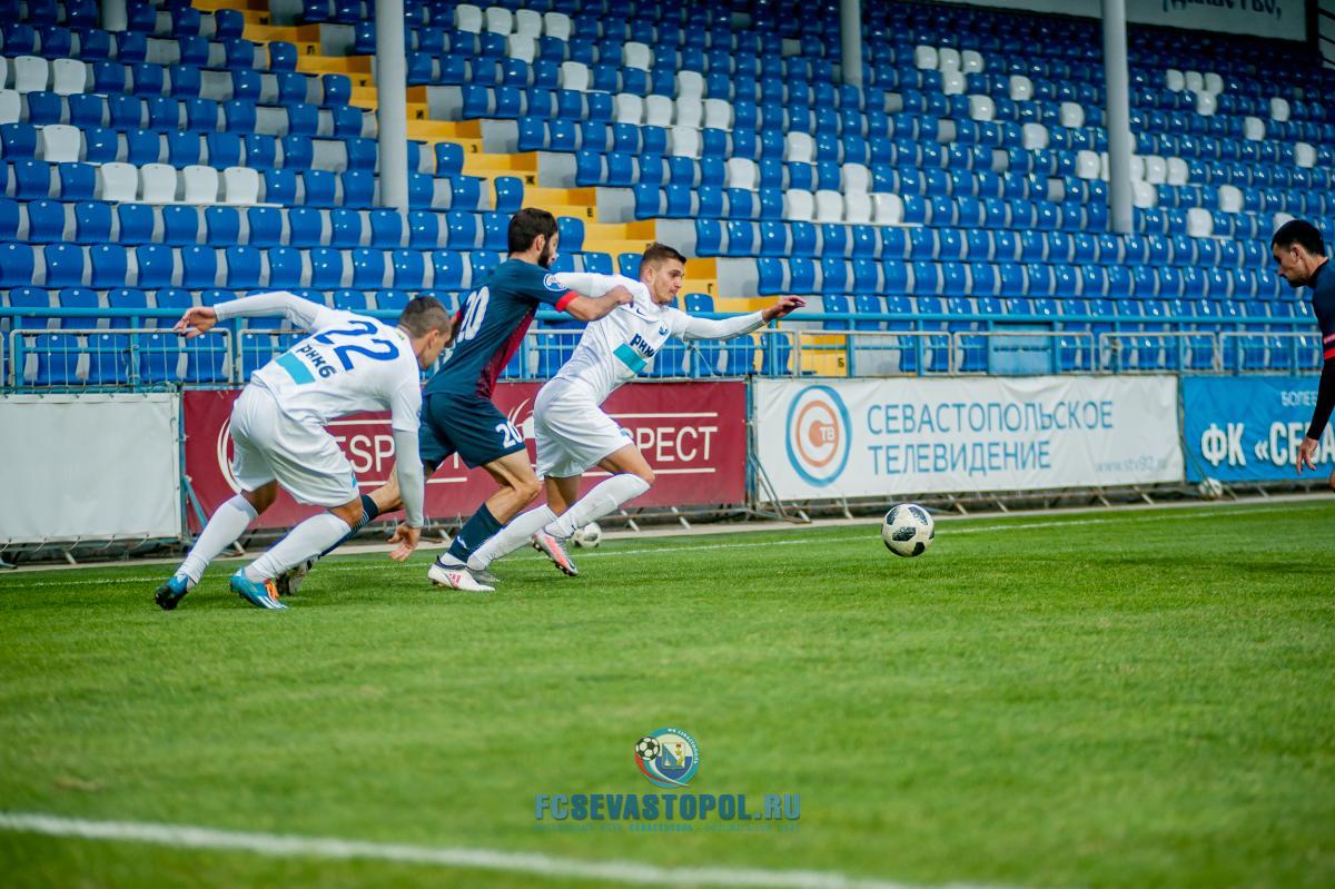 Быстрый гол придал уверенности футболистам «Севастополя», они полностью контролировали ход игры и ещё в первом тайме обязаны были увеличивать счёт. На 23-й минуте красивая трёхходовка Кива – Айметдинов – Тарасенко завершилась выходом Захара один на один с голкипером «ТСК-Таврии». Находясь на углу вратарской, наш нападающий не успел нанести завершающий удар, и момент был упущен. В первом тайме запомнились эффектные действия Александра Смирнова и Артура Айметдинова. На 22-й минуте Александр прицельно пробивал головой из центра штрафной после подачи углового, но симферополец Данил Фролов в броске вытащил мяч из нижнего угла ворот. Через две минуты Артур ударом через себя из района одиннадцати метров отправлял мяч под перекладину, но голкипер гостей оказался на месте, грамотно оценив ситуацию.