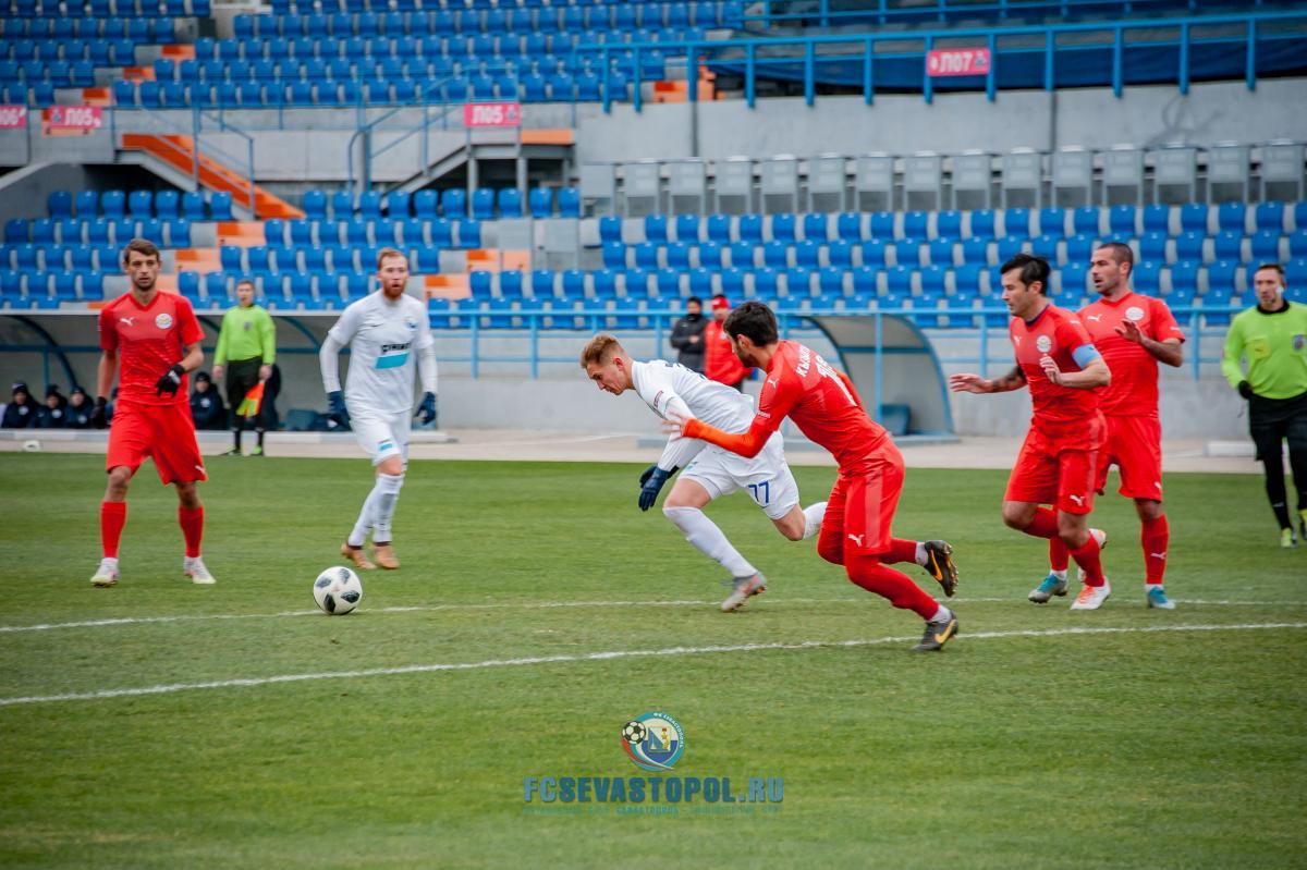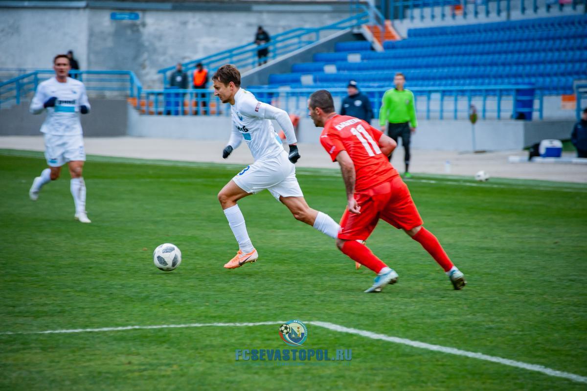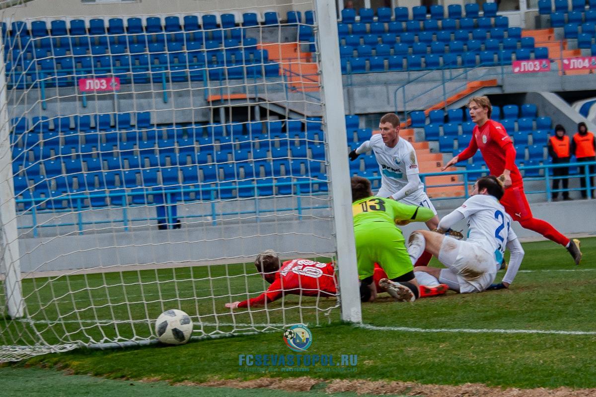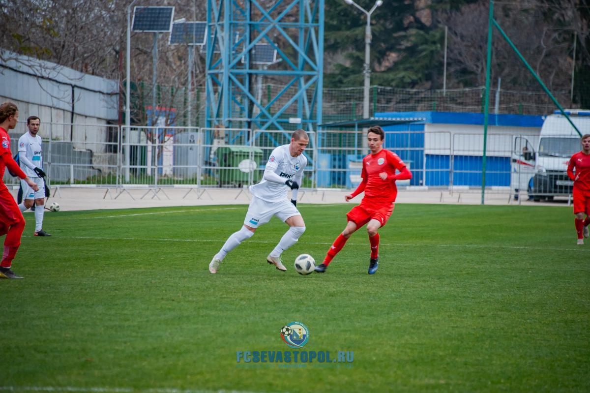 Бахчисарайцы неожиданно повели в счёте уже на 2-й минуте. Фланговая атака гостей завершилась прострелом в штрафную, где Андрей Маматюк умело воспользовался ошибкой голкипера и защитников хозяев поля и отправил мяч в сетку ворот – 0:1. Дальнейший ход матча оказался предсказуем и однообразен. «Севастополь» большую часть времени проводил в атаке, стараясь скорее выйти из создавшегося положения. Игра у наших ребят ладилась, напряжение у ворот Олега Суворова с каждой минутой нарастало, гол назревал. В итоге полчаса потребовалось севастопольцам, чтобы восстановить в матче статус-кво. На 32-й минуте Даниил Наговицин, атакуя вторым темпом, прошёл от линии штрафной до угла вратарской и точным ударом отправил мяч в дальний от голкипера угол ворот – 1:1. Ещё до перерыва Даниил мог вывести свою команду вперёд, но, находясь в похожей голевой ситуации, чуть промедлил, и защитник «Кызылташа» сумел отбить мяч за линию поля.