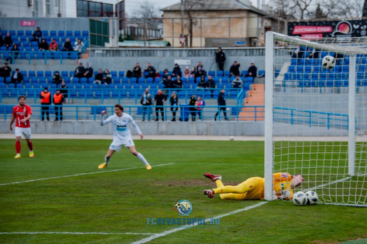 После перерыва ожидалось, что гости бросят все силы, чтобы зацепиться хотя бы за ничью, но в этот вечер «Севастополь» уже невозможно было остановить. На 60-й минуте хозяева поля должны были увеличивать счёт, но фланговый прострел Захара Тарасенко на мгновение не успел замкнуть Максим Супрун, в падении ногами пытавшийся достать мяч. Спустя минуту Захар с Максимом благодаря прессингу вынудили защиту и вратаря соперника совершить грубую ошибку, которая привела к автоголу за авторством Константина Морозова, – 3:0.