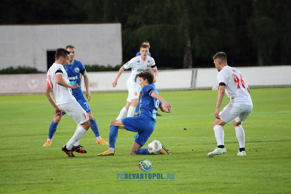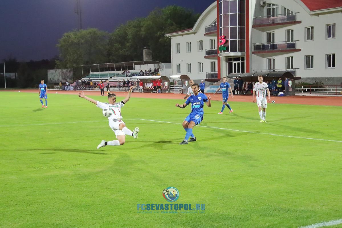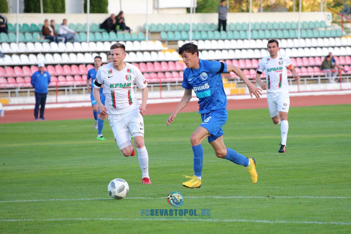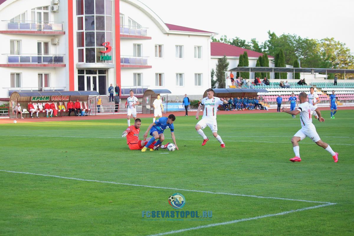 «Севастополь» вышел на игру в непривычном стартовом составе. Олег Лещинский дал возможность отдохнуть группе студентов СевГУ, которые на неделе провели три сложнейших матча НСФЛ России в Евпатории. Так в запасе оказались Максим Супрун, Александр Смирнов, Леонид Загребельный и Евгений Замерец. Вышедшие вместо них футболисты выглядели уверенно, как и вся команда, которая провела игру первым номером, имела массу возможностей забить мяч и решить исход встречи в свою пользу.