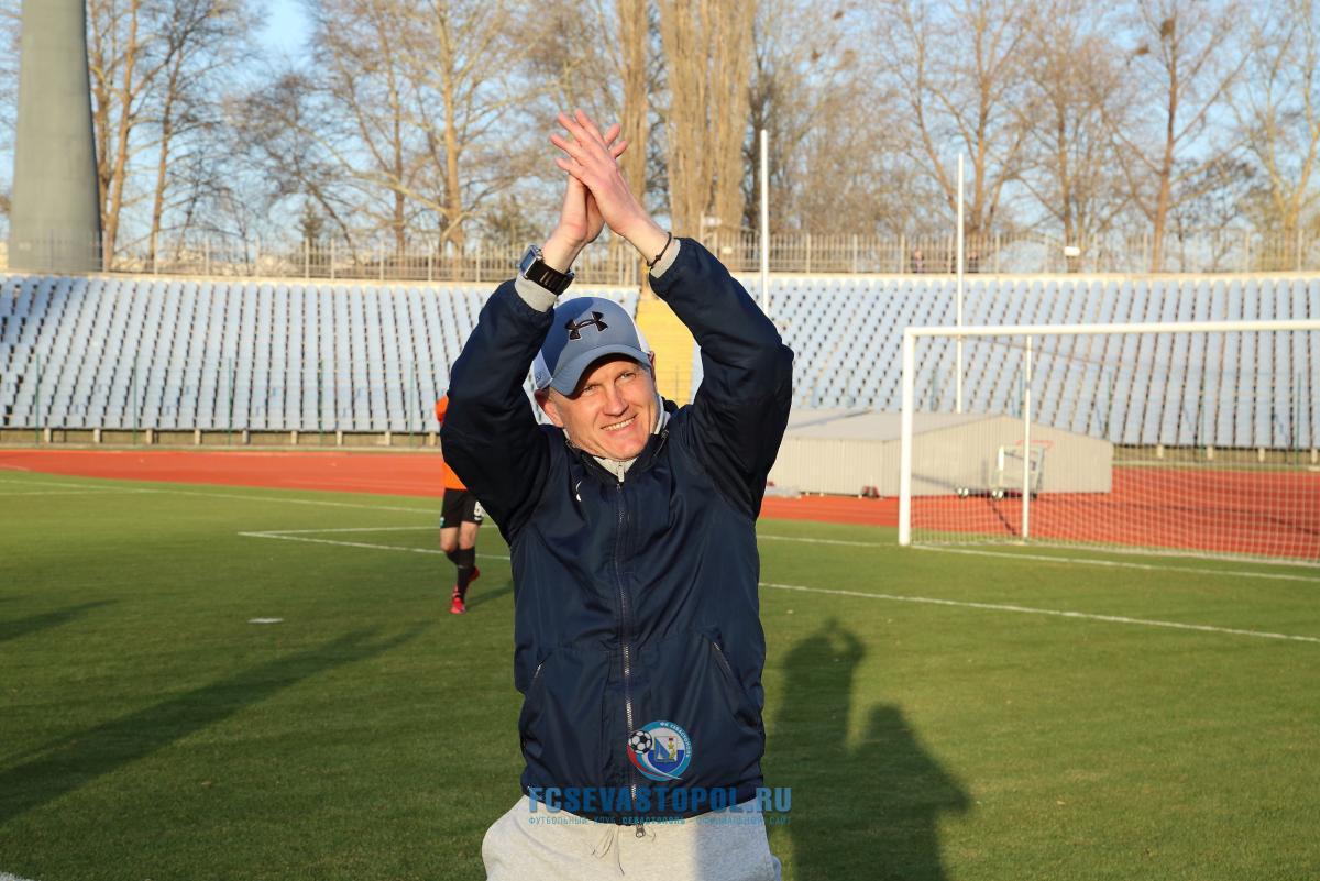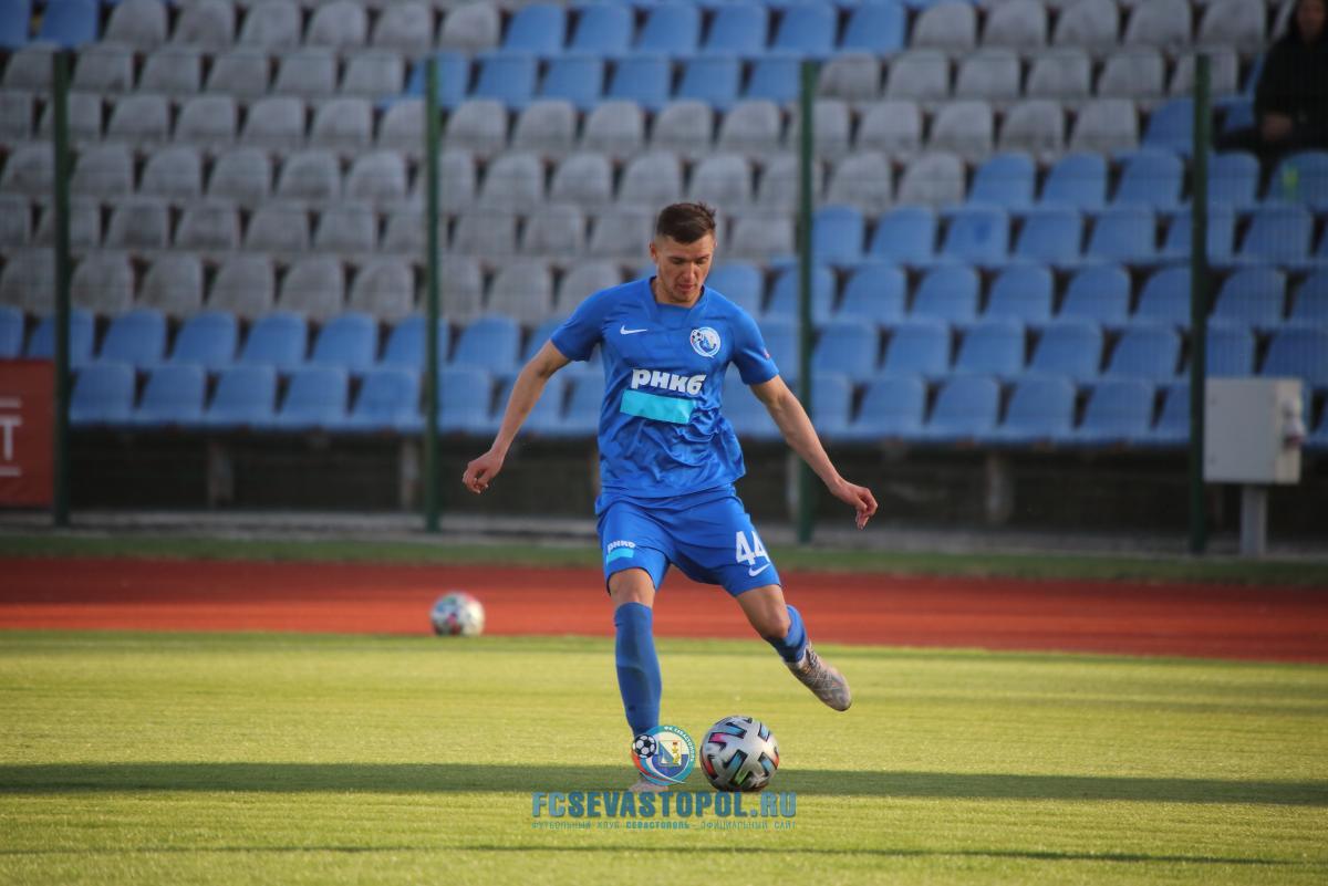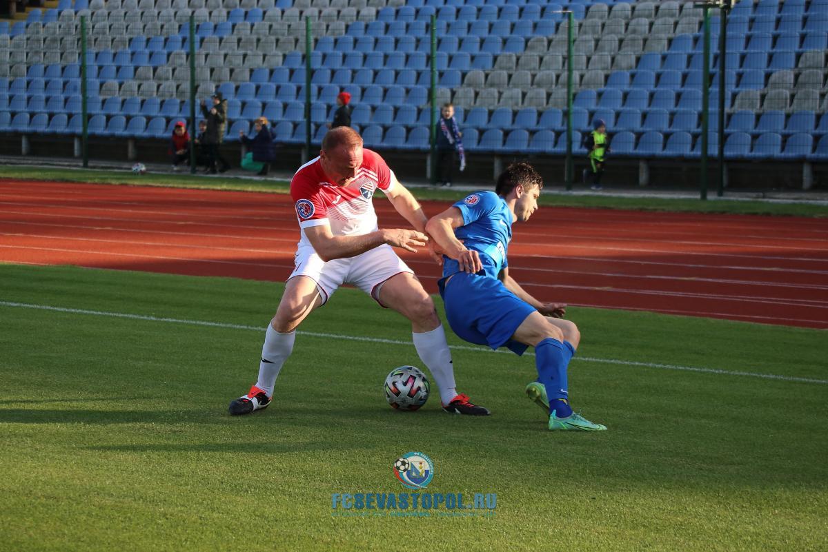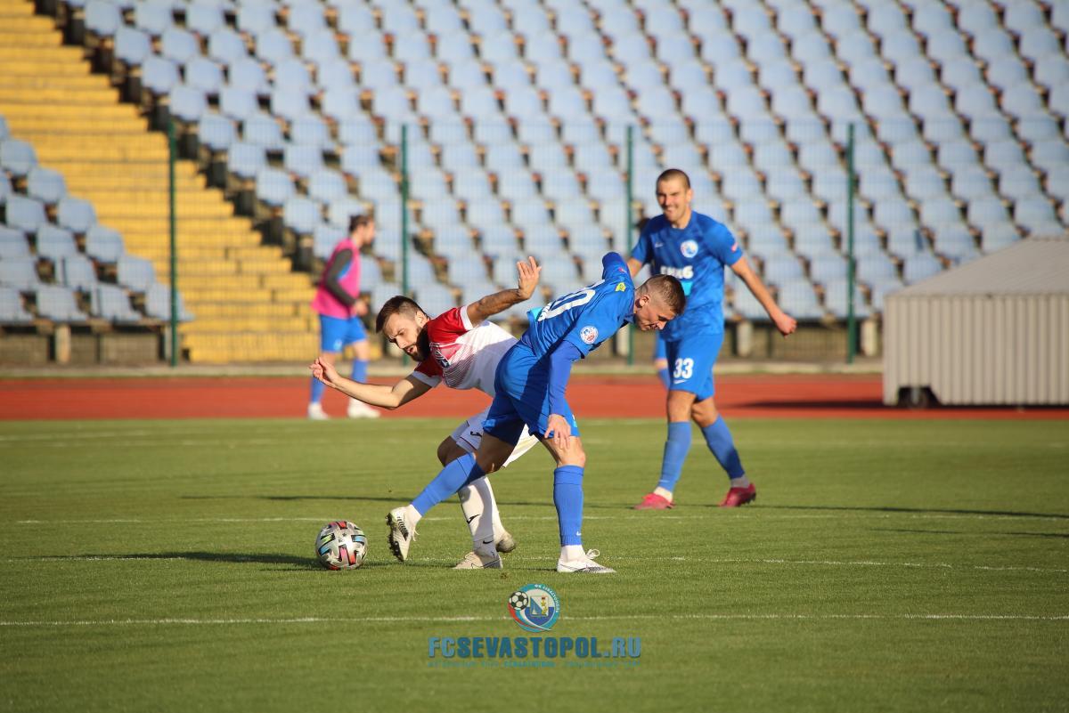 Подопечные Станислава Гудзикевича доминировали с первых минут матча и уже к перерыву выигрывали с преимуществом в два мяча. Впрочем, игровое преимущество севастопольцы воплотили в гол лишь на 22-й минуте, когда Антон Голенков откликнулся на подачу Романа Климентовского на угол вратарской и в падении ударом головой оставил не у дел голкипера хозяев поля. На 37-й минуте аналогичный гол забил Матвей Гуйганов, только бил он из района одиннадцатиметровой отметки, а ассистировал ему Голенков.