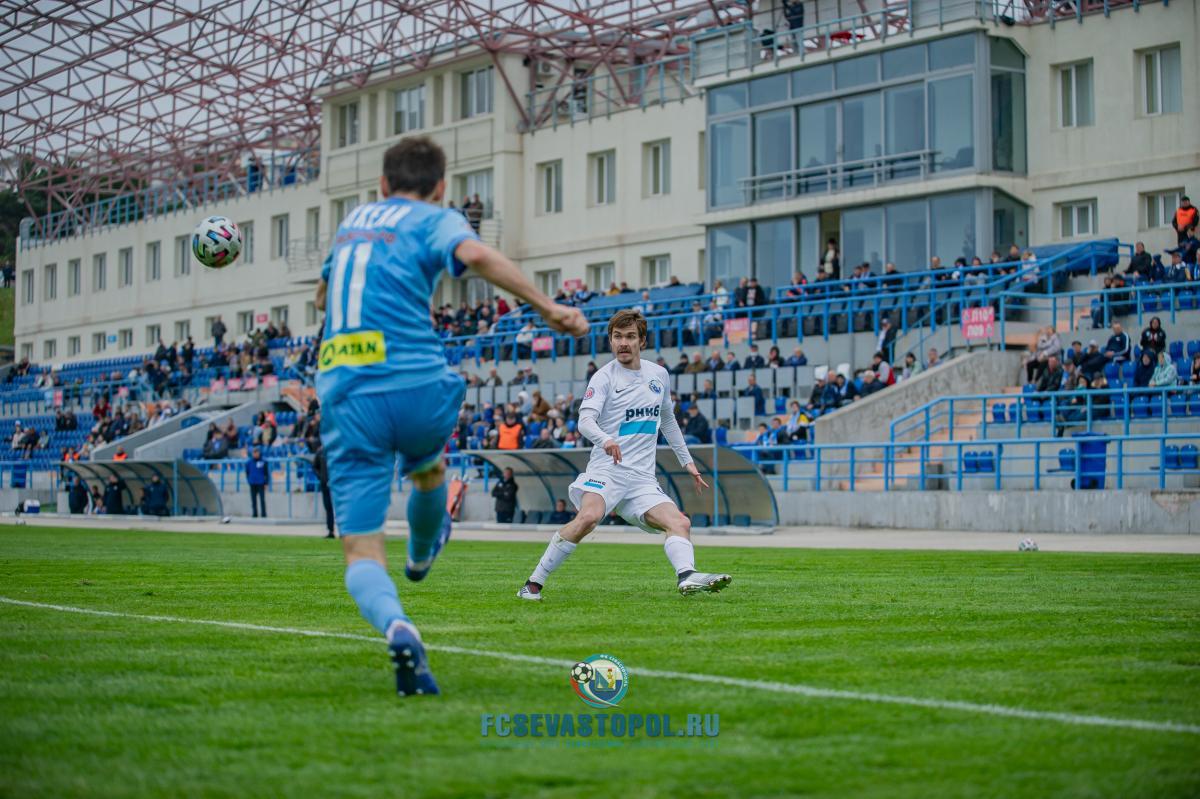 По ходу игры превосходство подопечных Станислава Гудзикевича не вызвало сомнений. Севастопольцы действовали в своё удовольствие, разрывая оборону соперника по всей ширине поля. Гол назревал с первых минут матча, но взятие ворот состоялось на лишь 22-й минуте. Фланговый прорыв Редвана Османова завершился точной передачей вдоль вратарской на набегающего Владислава Гевлича, которому ничего не оставалось, как переправить мяч в ворота – 1:0. До конца первого тайма Османов и Гевлич могли увеличить счёт, но после их ударов головой на пути мяча дважды оказывалась перекладина ворот.