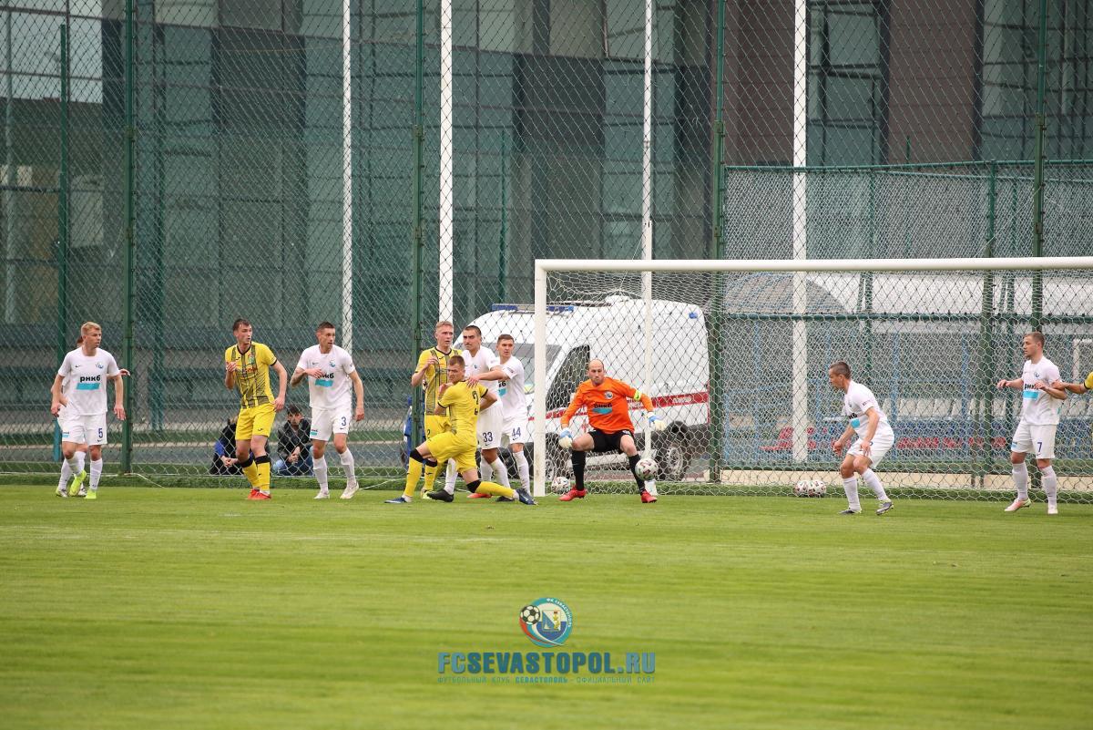 Хозяевам поля хватило пяти минут, чтобы отыграться. На 29-й минуте после подачи в штрафную Длявера Нуридинова мяч в районе одиннадцатиметровой отметки получил Азамат Атаев, пробивший с разворота в дальний угол ворот Сергея Науменко. Голкипер севастопольцев среагировал на удар, но достать мяч в броске не смог – 1:1. До конца первого тайма шла преимущественная равная борьба, но активнее в атаке действовал "Севастополь".