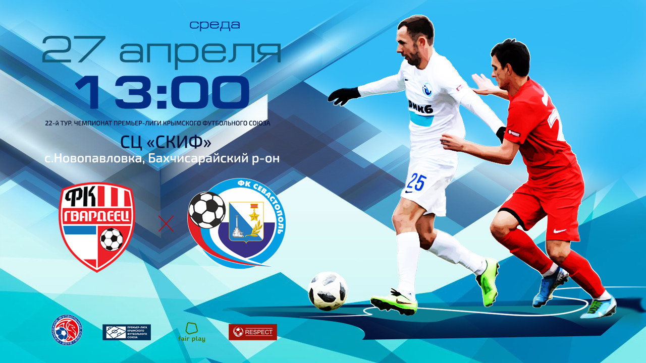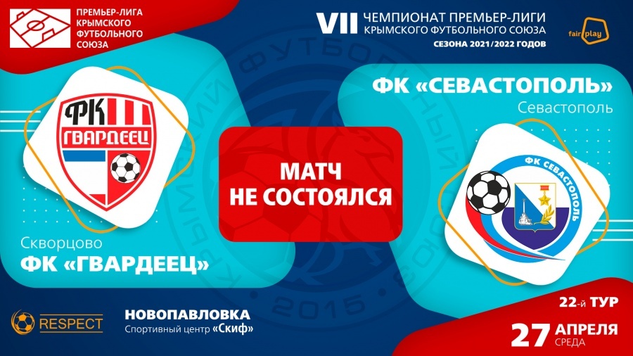 Матч 22-го тура чемпионата Премьер-лиги КФС «Гвардеец» – «Севастополь» пройдёт 27 апреля (среда) на стадионе СК «Скиф». Начало в 13.00.