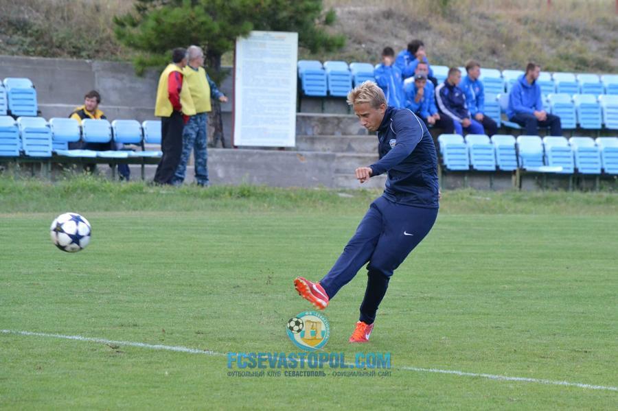 Гости продолжили владеть инициативой, но нервозность, которая присутствовала в действиях наших футболистов, не позволила севастопольцам развить свой успех. Не хватало быстроты и точности при принятии решений, и из-за этого была загублена не одна перспективная атака. Прекрасная возможность забить была упущена под конец тайма, когда Мироненко не сумел как следует прострелить вдоль штрафной на набегавших Мыкало и Кухарука.