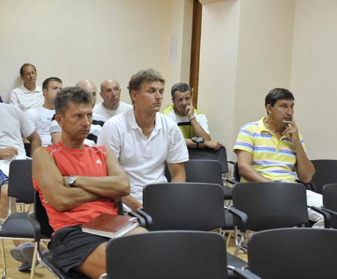 Помимо специалистов, которые вели лекции, в семинаре приняли участие президент ФК «Севастополь» – Александр Львович Красильников и вице-президент нашего клуба Евгений Евгеньевич Репенков, а также главный тренер первой команды Александр Рябоконь и старший тренер «Севастополь-2» Анатолий Скворцов, с выступления этих специалистов и начался наш семинар.