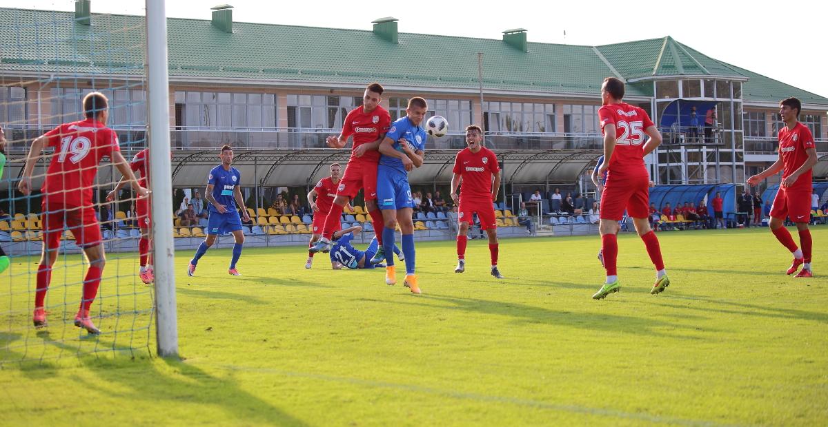 «Севастополь» потерпел первое поражение в чемпионате, уступив в Новопавловке вернувшемуся после годичного перерыва в Премьер-лигу скворцовскому «Гвардейцу» 0:2. Назвать результат закономерным нельзя, так как ещё в первом тайме подопечные Олега Лещинского могли снять все вопросы о победителе противостояния. Преимущество севастопольцев было очевидным. «Гвардеец» действовал от обороны, в которой отрабатывали практически все футболисты хозяев поля. Пробиться к воротам было очень сложно, тем не менее уже на 8-й минуте Антон Голенков завершал розыгрыш стандартного положения сильным ударом из-за пределов штрафной. Мяч летел под перекладину ворот, но защитник «Гвардейца» отбил его головой и тем самым спас свою команду от неминуемого гола. На 11-й минуте фланговый рейд Максима Супруна завершился пасом в центр штрафной, где набегавший Антон Голенков с ходу пробил, но удар получился слабым, и Азамат Томаев без особого труда парировал его. На 13-й минуте Даниил Наговицин переиграл оппонента и вместе с Захаром Тарасенко вдвоём вышли на одного защитника и вратаря. Перспективная атака завершилась ударом Захара с линии штрафной, с которым голкипер «Гвардейца» успешно справился. На 43-й минуте Тарасенко пытался во вратарской замкнуть фланговый прострел Максима Супруна, но в последний момент защитники вынесли мяч с линии ворот.