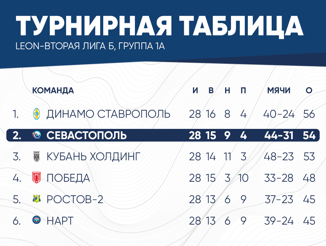 Следующий матч наша команда проведет с лидером турнира — ПФК «Динамо Ставрополь». Игра пройдет на СОК «Севастополь» 4 октября. Начало в 17:00.