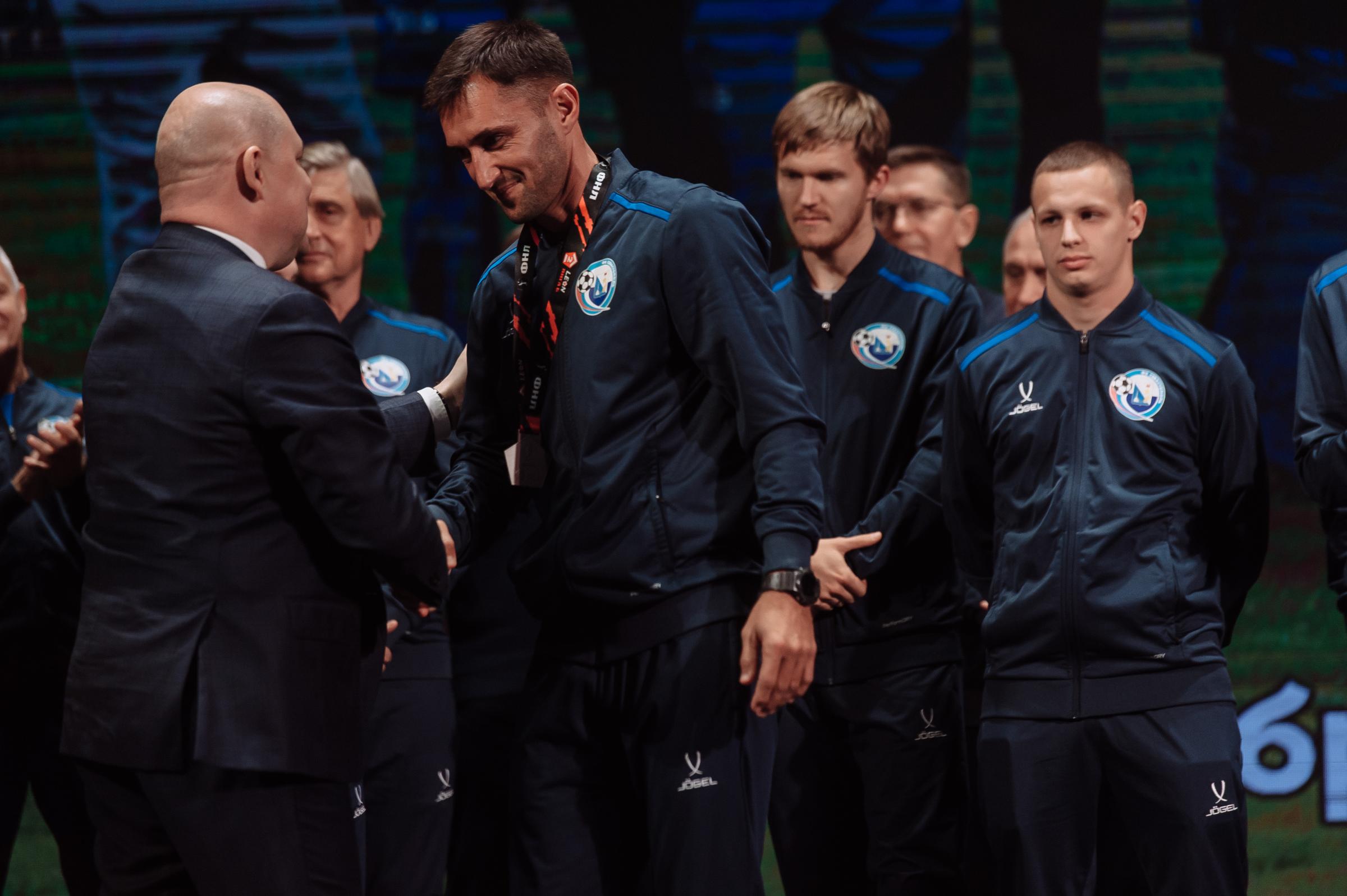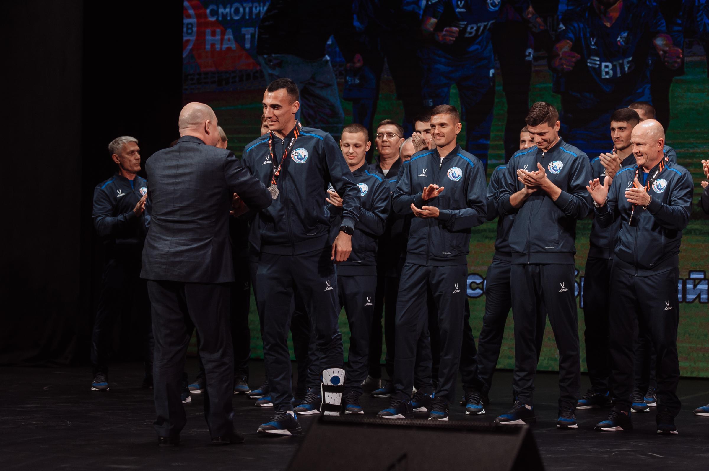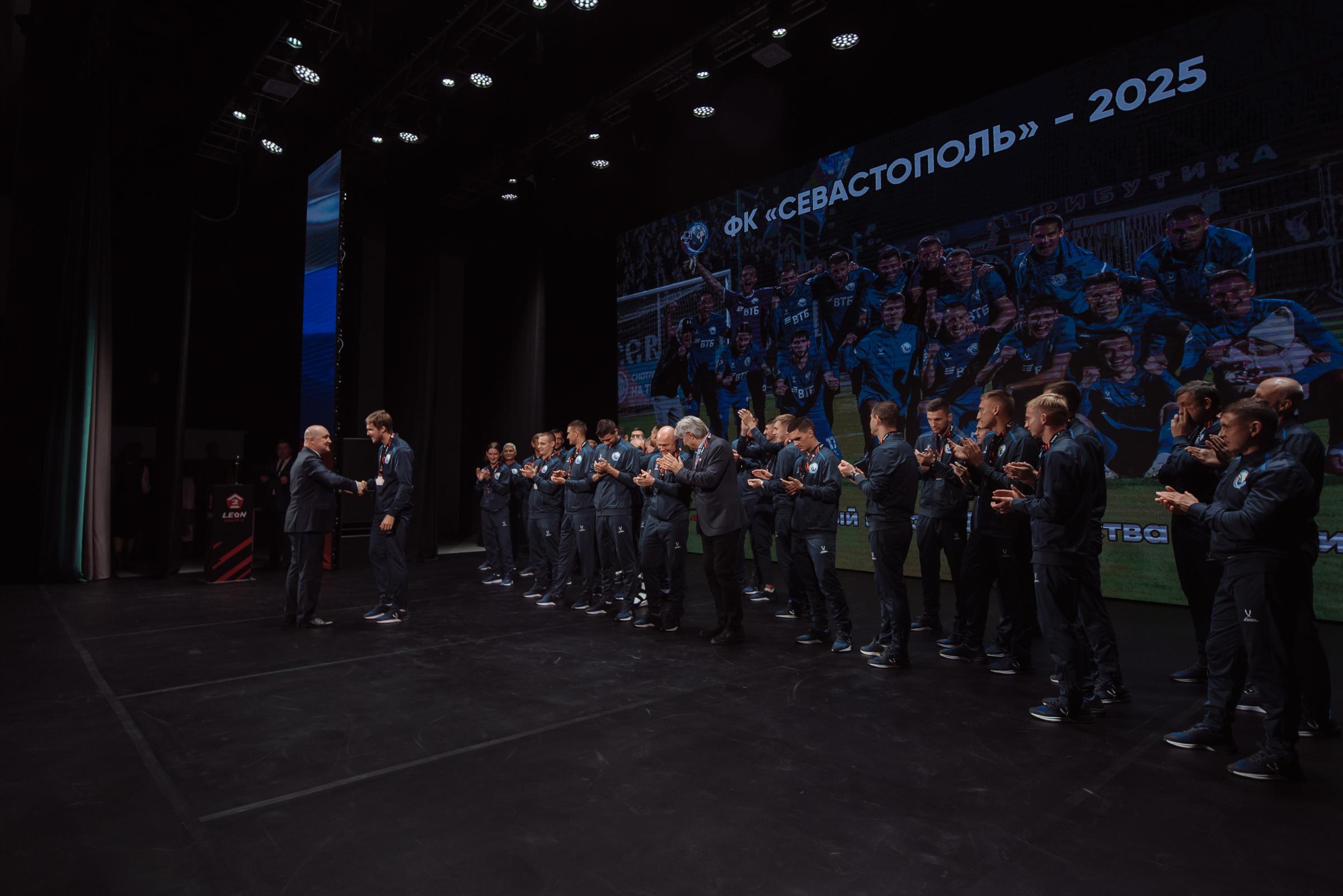 Торжественная церемония награждения ФК «Севастополь» серебряными медалями LEON-Первенства России по футболу среди команд Второй Лиги «Дивизион Б» прошла в Многофункциональным культурным центром «Бухта Казачья». Награды футболистам и тренерам вручил Губернатор Севастополя Михаил Развожаев.