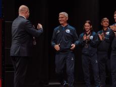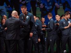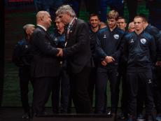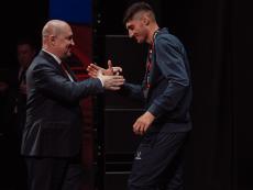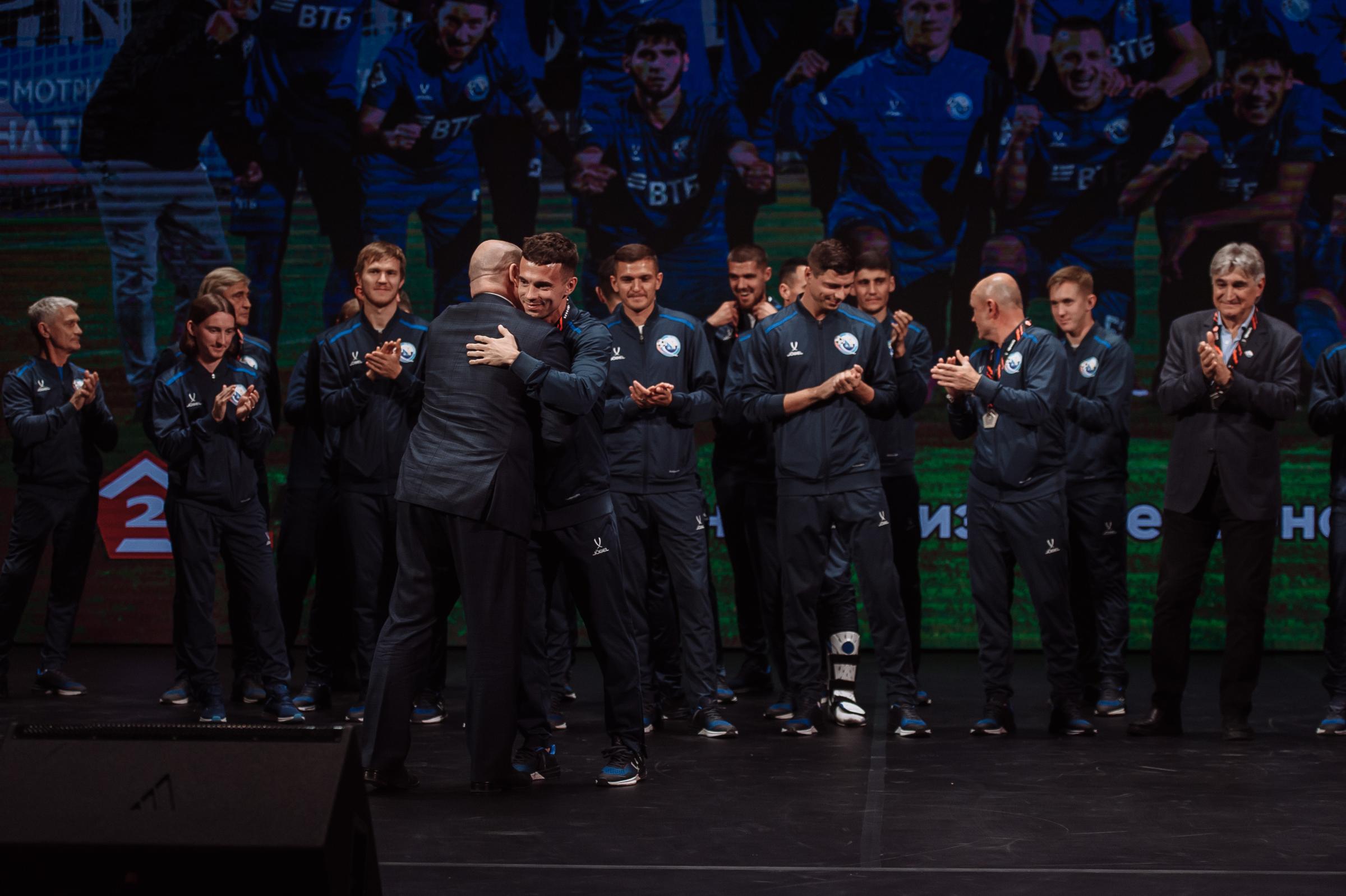 Один из лидеров фанатского движения ФК «Севастополь» Иван Куба поблагодарил команду за высокий результат сезона, а Губернатора за поддержку команды и вручил Михаилу Развожаеву специально изготовленный клубный шарф с фамилиями всех футболистов и тренерского штаба команды.
