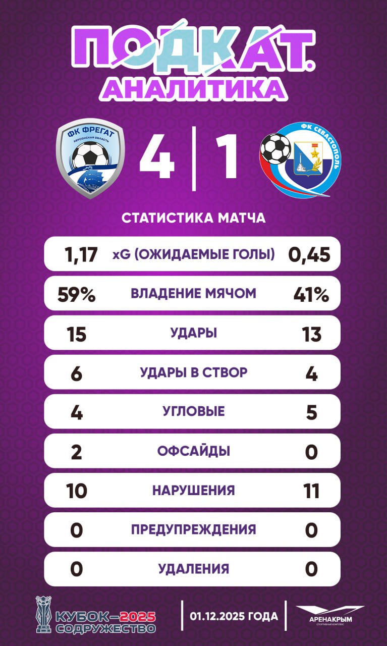 Кубок "Содружество". 1/4 финала. «Фрегат» (Херсонская обл) – «Севастополь-2» 4:1. Матч-центр