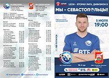 Программка к матчу 17-го тура LEON-Первенства России по футболу среди команд Второй лиги, "Дивизион Б", группа 1, сезона-2024 между "Севастополем" и "Динамо Ставрополем" (Ставрополь), состоявшемуся 6 июля 2024 года.