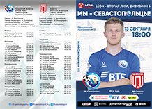 Программка к матчу 1-го тура в группе 1А, LEON-Первенства России по футболу среди команд Второй лиги, "Дивизион Б", сезона-2025 между "Севастополем" и "Победой" (Хасавюрт), состоявшемуся 20 сентября 2025 года.
