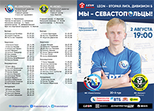Программка к матчу 4-го тура LEON-Первенства России по футболу среди команд Второй лиги, "Дивизион Б", группа 1.1, сезона-2023 между "Севастополем" и "Биологом-Новокубанском", состоявшемуся 6 августа 2023 года.